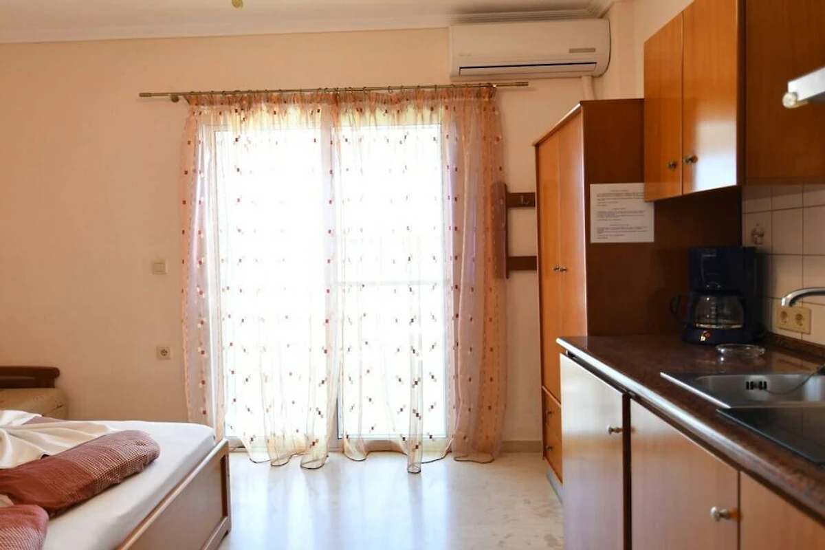 Studios für 2 oder 3 Personen mit Küchezeile, Dusche / WC und ca. 8 qm Balkon. Küchezeile mit Ab/Umlüfter, Kühlschrank, 2 Herdplatten, Kaffeemaschine und Geschirr.