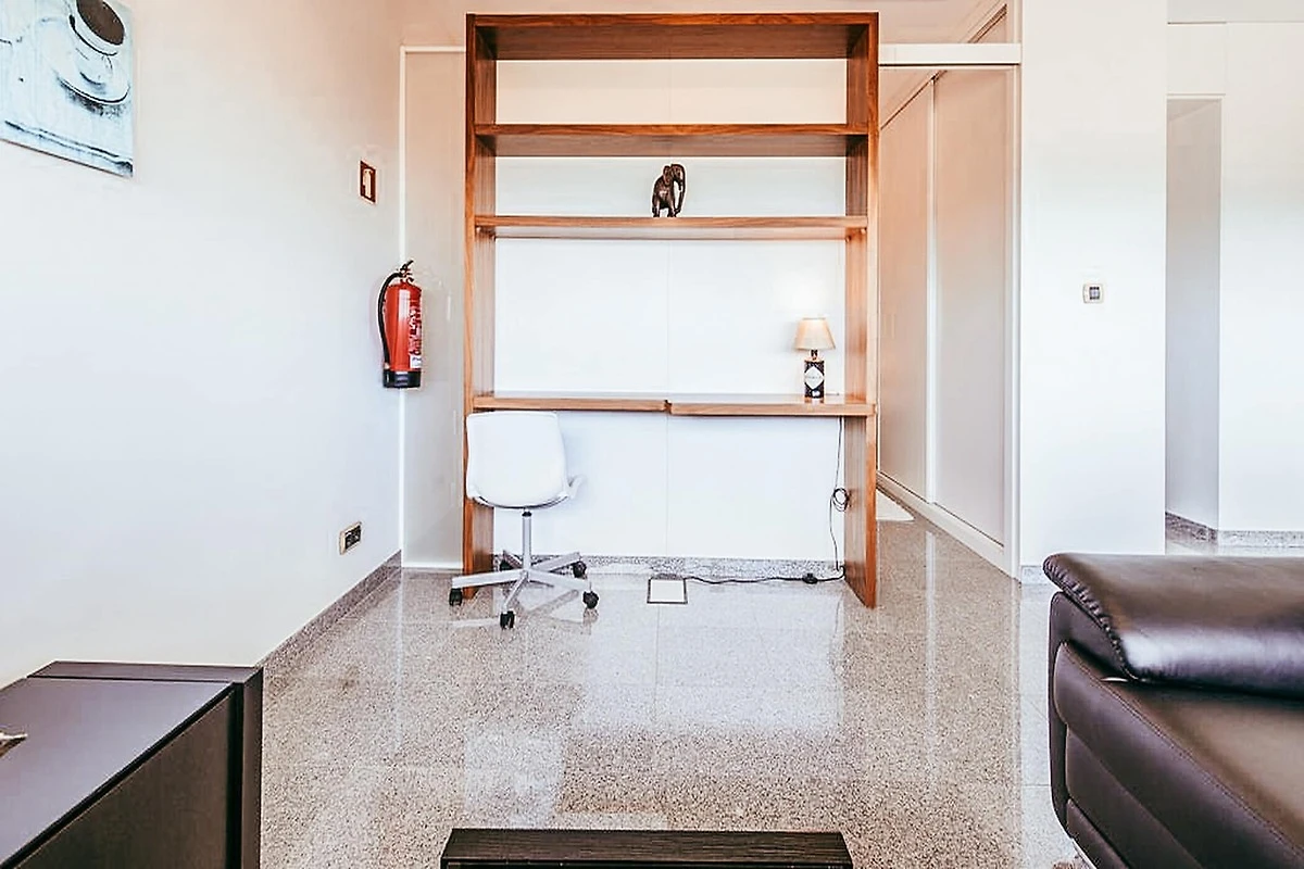 Die komfortable und stilvolle Einrichtung mit offenem Wohnbereich und separatem Arbeitsbereich ist ideal für Urlauber und alle, die remote arbeiten. Das Schlafzimmer ist eine Oase der Ruhe mit einem Queensize-Bett und viel Stauraum. Die voll ausgestattete Küche mit Induktionskochfeld, Backofen und Geschirrspüler ermöglicht es Ihnen, die besten Zutaten vom lokalen Markt zu Hause zu genießen. Wichtige Annehmlichkeiten wie Klimaanlage, Highspeed-WLAN und eine Waschmaschine sind inklusive und sorgen für einen komfortablen und modernen Aufenthalt in einem der kreativsten Viertel der Stadt.