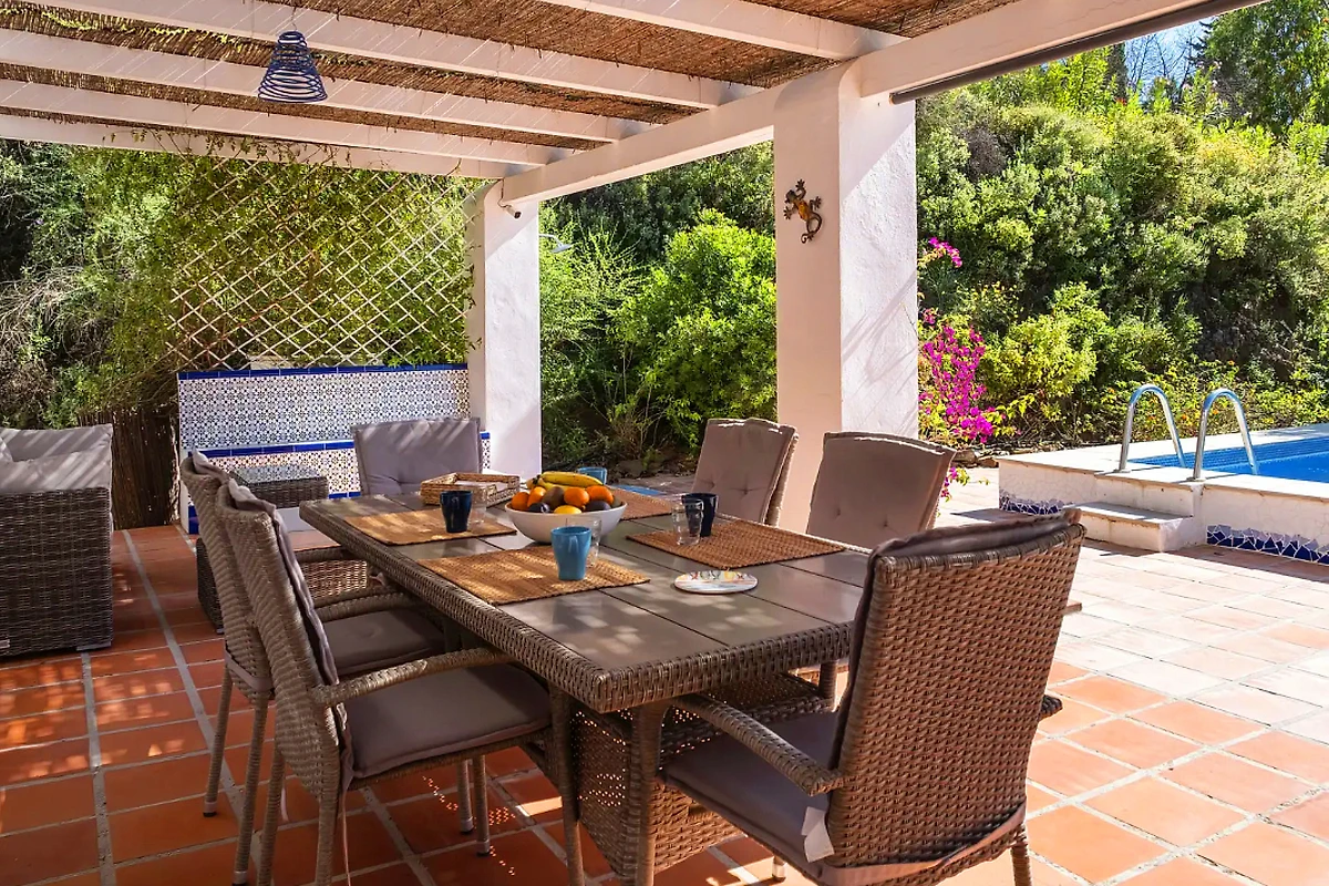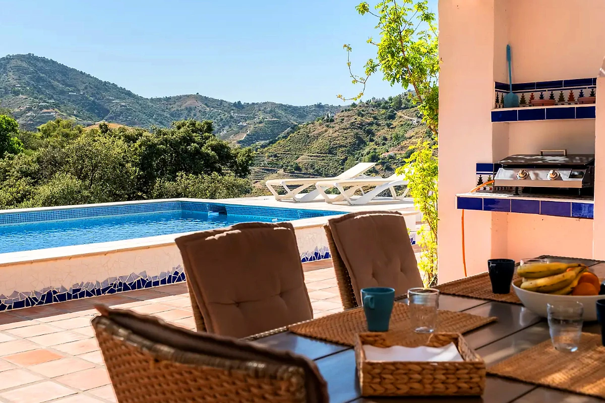 Willkommen in der Casa Mañana – Ihrem perfekten Rückzugsort an der Costa del Sol, zwischen Competa und Torrox! Dieses großzügige Ferienhaus bietet auf 140 m² Platz für bis zu 6 Gäste mit drei Schlafzimmern, zwei Badezimmer und ein Gäste WC. Genießen Sie entspannte Stunden im gepflegten Garten oder auf der Terrasse, während der private Swimmingpool für Erfrischung sorgt. Ein überdachter Sitzplatz mit BBQ-Grill sorgt für gesellige Abende, Sonnenliegen laden zum Verweilen ein. Die offene Küche ist mit Spülmaschine, Mikrowelle, Wasserkocher, Kaffeemaschine und allen wichtigen Utensilien ausgestattet. Für Familien stehen ein Babybett und ein Hochstuhl zur Verfügung. Die klimatisierten Räume sorgen auch an warmen Tagen für angenehme Temperaturen. Waschmaschine, Bügeleisen und Haartrockner bieten zusätzlichen Komfort. Bettwäsche wird gestellt, und ein Parkplatz ist direkt am Haus vorhanden. Im Wohnbereich erwartet Sie ein Fernseher sowie kostenloses WLAN für entspannte Stunden. Die liebevoll eingerichteten Räume strahlen eine gemütliche Wärme aus. Casa Mañana ist ein Nichtraucherhaus, in dem Sie sich mit Ihrer Familie oder Freunden rundum wohlfühlen werden. Entdecken Sie das andalusische Lebensgefühl und erleben Sie unvergessliche Urlaubstage – Ihr Wohlfühlplatz unter der Sonne Spaniens!
