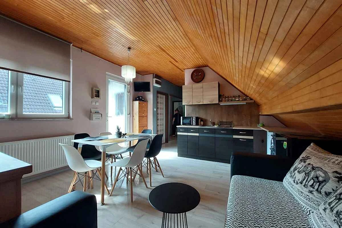 Ferienwohnung, 1 Etage, 3 Zimmer (davon 2 Schlafzimmer), 75 qm, insgesamt 6 Betten (davon 2 Zusatzbetten).