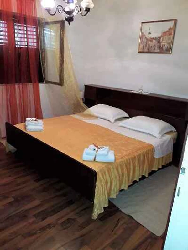 Primošten, Ortsteil Primošten. Die Ferienwohnung befindet sich auf einem offenen Grundstück. Der Vermieter wohnt ständig im Haus, nutzt jedoch einen separaten Eingang. In der Nähe der in Primošten in der Region Gespanschaft Šibenik-Knin gelegenen Ferienwohnung befinden sich Strand Rtic und Strand Velika Raduca. Die Unterkunft bietet kostenloses WLAN und kostenlose Privatparkplätze. Die Zufahrt erfolgt über eine Nebenstrasse (asphaltiert). Parkplatz (für 2 Pkws) auf dem Grundstück.