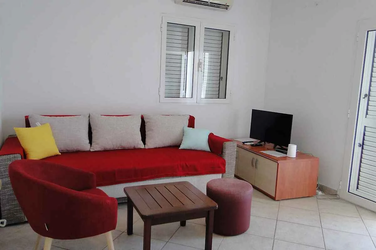 Die Ferienwohnung befindet sich in einem Apartementhaus und ist zweckmässig eingerichtet. Das Grundstück liegt am Ortsrand. Auch wegen des Ausblicks vom Grundstück auf das Meer und der ruhigen Lage ist das Domizil beliebt. Zur gemeinsamen Nutzung stehen zur Verfügung: Sonnenschirm, Sonnenliege, Grillmöglichkeit, Terrasse und Hof.