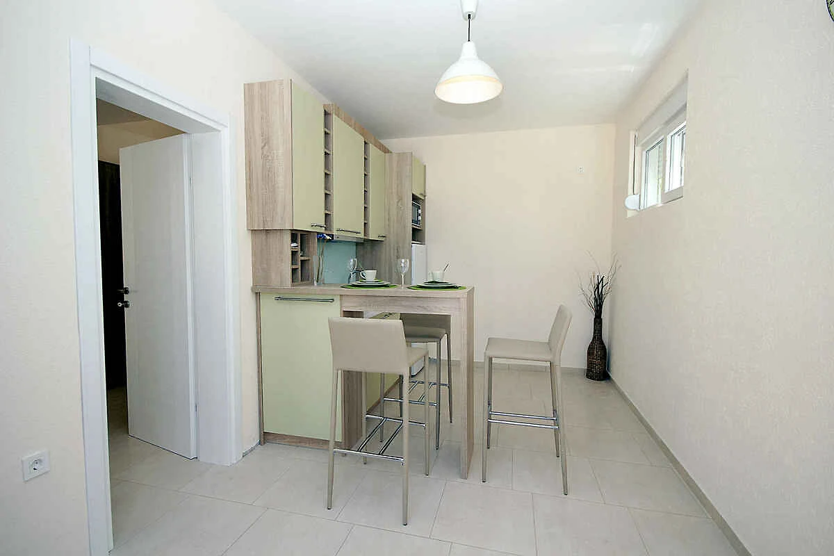 Sutomore. Die Ferienwohnung befindet sich auf einem 300 qm grossen Gartengrundstück. Der Vermieter wohnt ständig im Haus, nutzt jedoch einen separaten Eingang. Parkplatz (für 1 Pkw) auf der Strasse vor dem Haus.