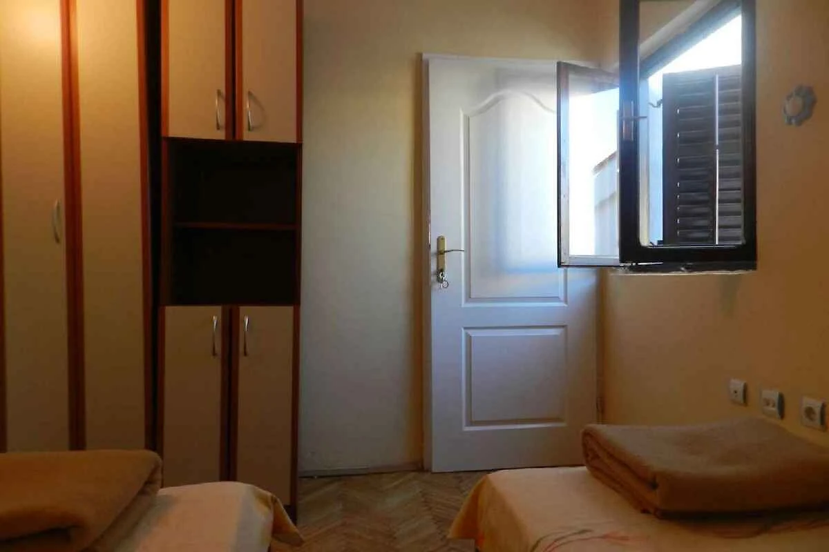 Der Eingang in Ihre Ferienwohnung befindet sich in der 2. Etage und führt direkt in das Wohn/Schlafzimmer. Wohn/Schlafzimmer mit 1 Zusatzbett auf Couch/Sofa, TV und Zugang zum Balkon (9 qm). 2 Schlafzimmer jeweils (9 qm) mit 2 Einzelbetten. Schlafzimmer (15 qm) mit 1 Doppelbett und 1 Einzelbett. Kochecke im Wohn/Schlafzimmer mit Gasherd, Backofen und Kühlschrank (Eisfach). Bad mit Waschmaschine, Dusche, 1 Waschbecken, WC und Föhn.