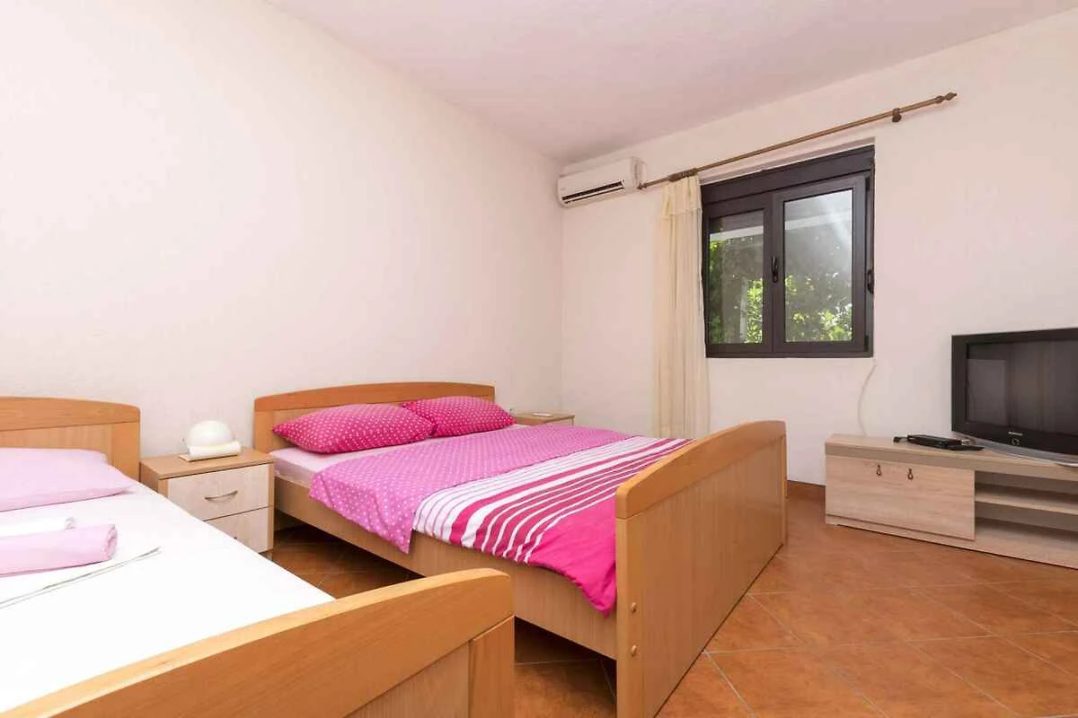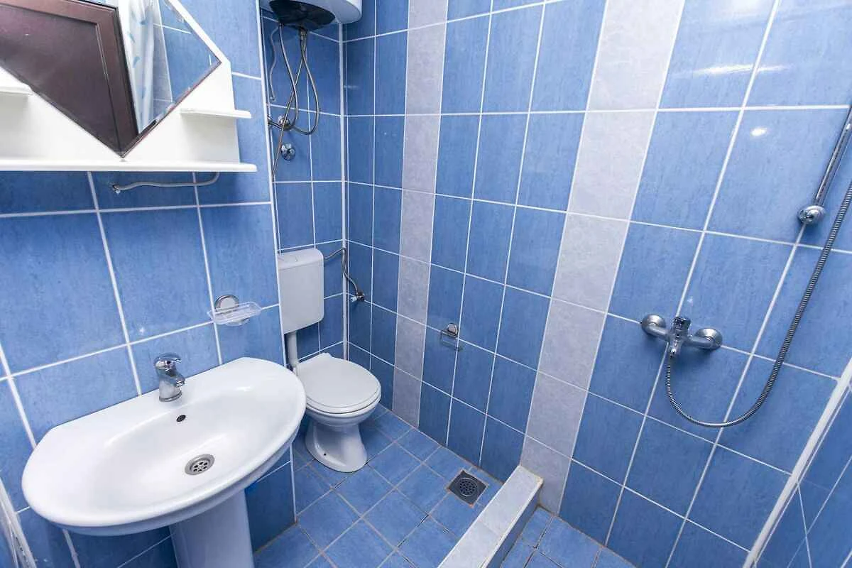 Ulcinj. Der Vermieter wohnt im Haus, nutzt jedoch einen separaten Eingang. Die Zufahrt erfolgt über eine Nebenstrasse (asphaltiert). Parkplatz (für 1 Pkw) auf der Strasse vor dem Haus.