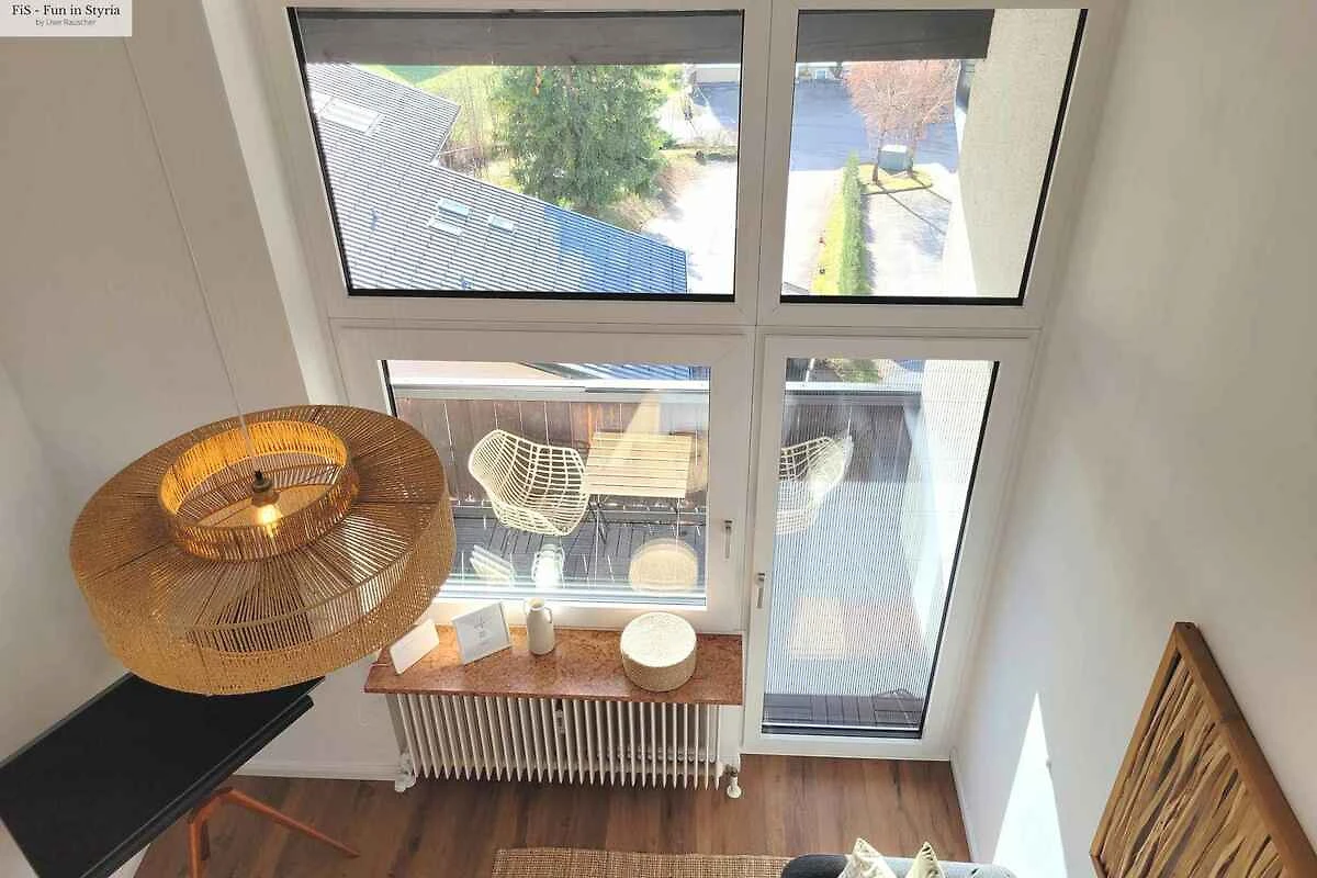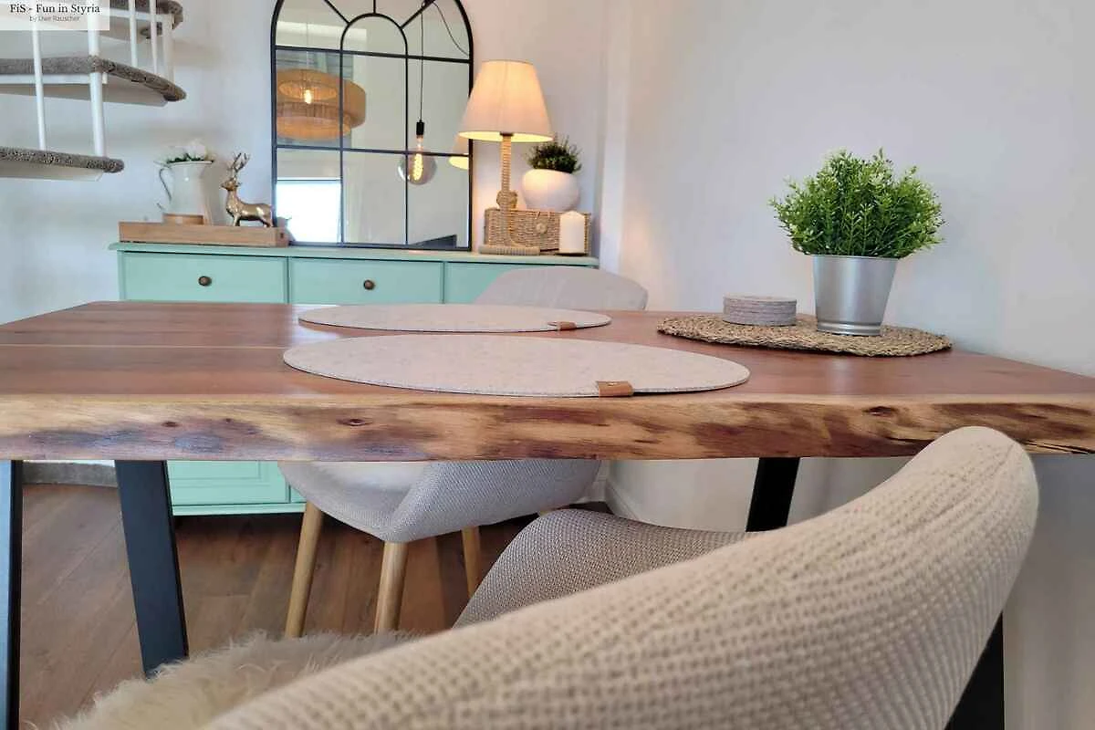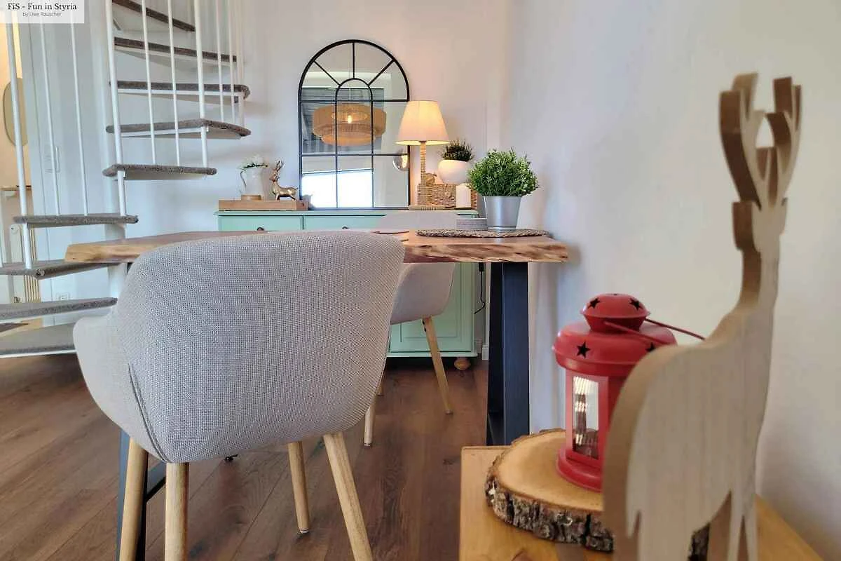 Bad Mitterndorf, 810 mNN. Die Ferienwohnung befindet sich in einer Ferienanlage. Die Zufahrt erfolgt über eine Nebenstrasse (asphaltiert). Im Winter sind Schneeketten empfohlen. Parkplatz (für 2 Pkws) auf dem Grundstück. Der Partkplatz befindet sich ca. 50 m unterhalb des Apartmenthauses. Zum Be- und Entladen des Gepäcks kann kurzzeitig vor dem Hauseingang geparkt werden.