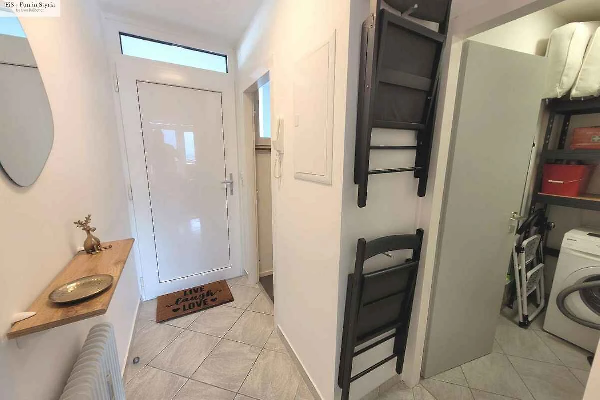 Der Eingang in Ihre Ferienwohnung befindet sich in der 3. Etage, ist ebenerdig und führt direkt in den Vorraum mit Garderobe.