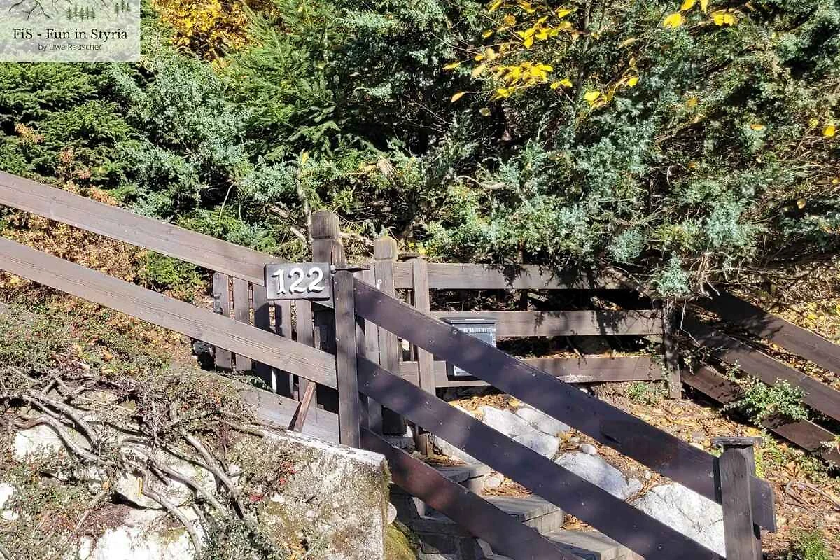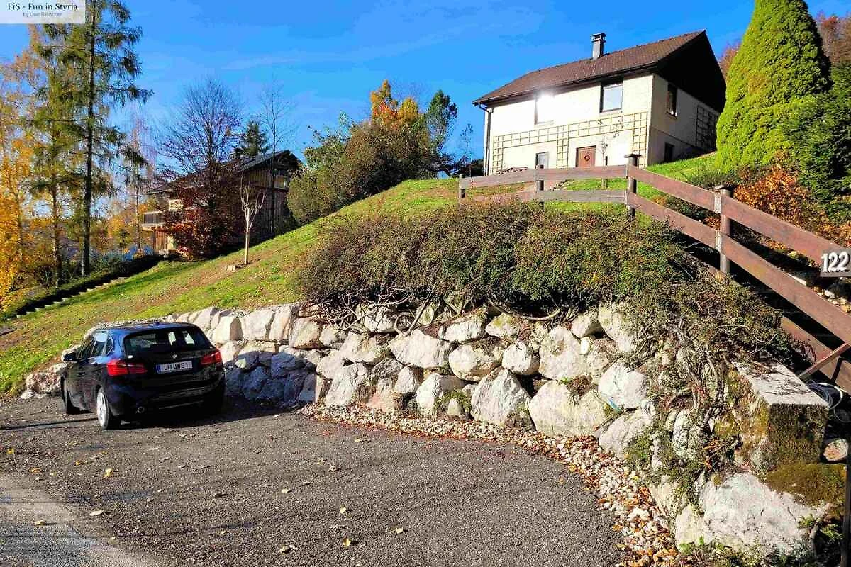 Bad Aussee, Ortsteil Bad Aussee, 800 mNN. Das Ferienhaus befindet sich auf einem 1500 qm grossen, offenen Gartengrundstück mit Wiese. Der Vermieter wohnt nicht im Haus oder auf dem Grundstück. Die Zufahrt erfolgt über eine Bergstrasse (asphaltiert, Länge 200 m). Im Winter sind Schneeketten empfohlen. Parkplatz (für 2 Pkws) auf dem Grundstück und der Strasse vor dem Haus. Umkehrmöglichkeit ca. 20 m oberhalb der Unterkunft in der Kehre. Es ist von Vorteil, vorher umzukehren und dann erst zu parken.