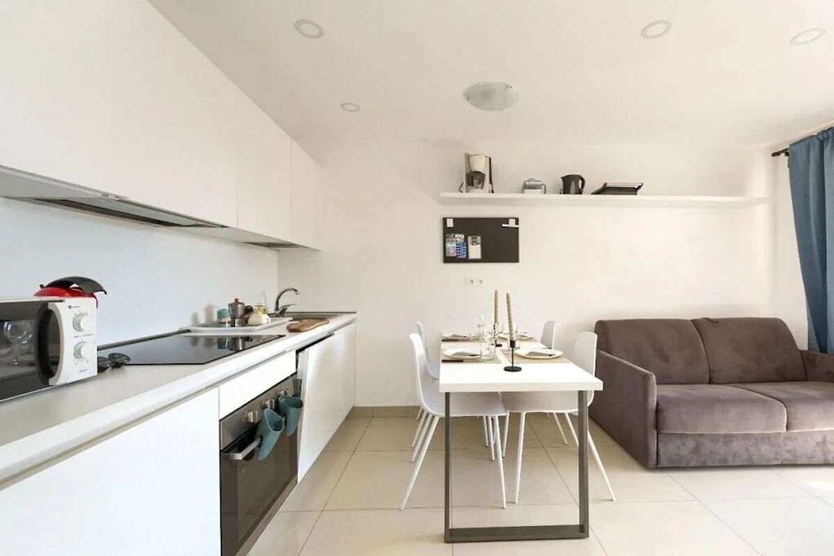 , , , Wohnzimmer(, , , , , Toilette, Schlafcouch 1 Pers., TV, Esstisch, Kochplatte, Wasserkocher, Toaster, Toaster, Kaffeemaschine, Backofen, Mikrowelle, Spülmaschine, Kühlschrank, Tiefkühlschrank, Dusche, Klimaanlage, Hochstuhl, Föhn), Küche(Kochnische, Kaffeemaschine, Backofen, Mikrowelle, Kühlschrank), Schlafzimmer(Doppelbett, Klimaanlage), Badezimmer(Föhn), Internet, Internet, Erste-Hilfe-Station, Trockner, Waschmaschine, Balkon(Spülmaschine), Balkon, Heizung, Parkplatz, Fahrräder verfügbar, Bügelbrett, Bügeleisen, Trockenschrank, Wäschepaket gegen Gebühr