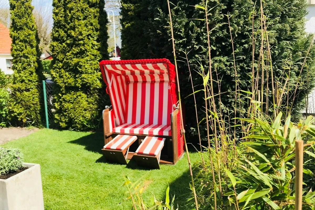 Draußen lädt der kleine Garten mit Strandkorb in der Nachmittag-/ Abendsolle und der Terrasse mit bequemen Gartenmöbeln zum Verweilen ein. Hier können Sie im Grünen entspannen oder nach einem Tag am Meer die frische Luft genießen. Ein eigener Parkplatz direkt am Haus sorgt für Komfort und kurze Wege. Die Unterkunft eignet sich auch hervorragend für längere Aufenthalte. Bettwäsche wird selbstverständlich gestellt. Entdecken Sie Sturmfrei – Ihr Feriendomizil an der Ostsee!