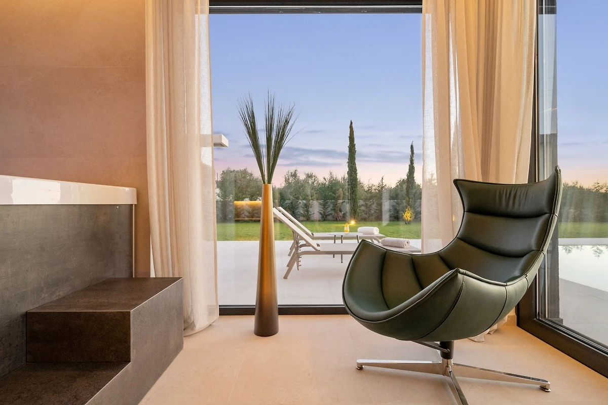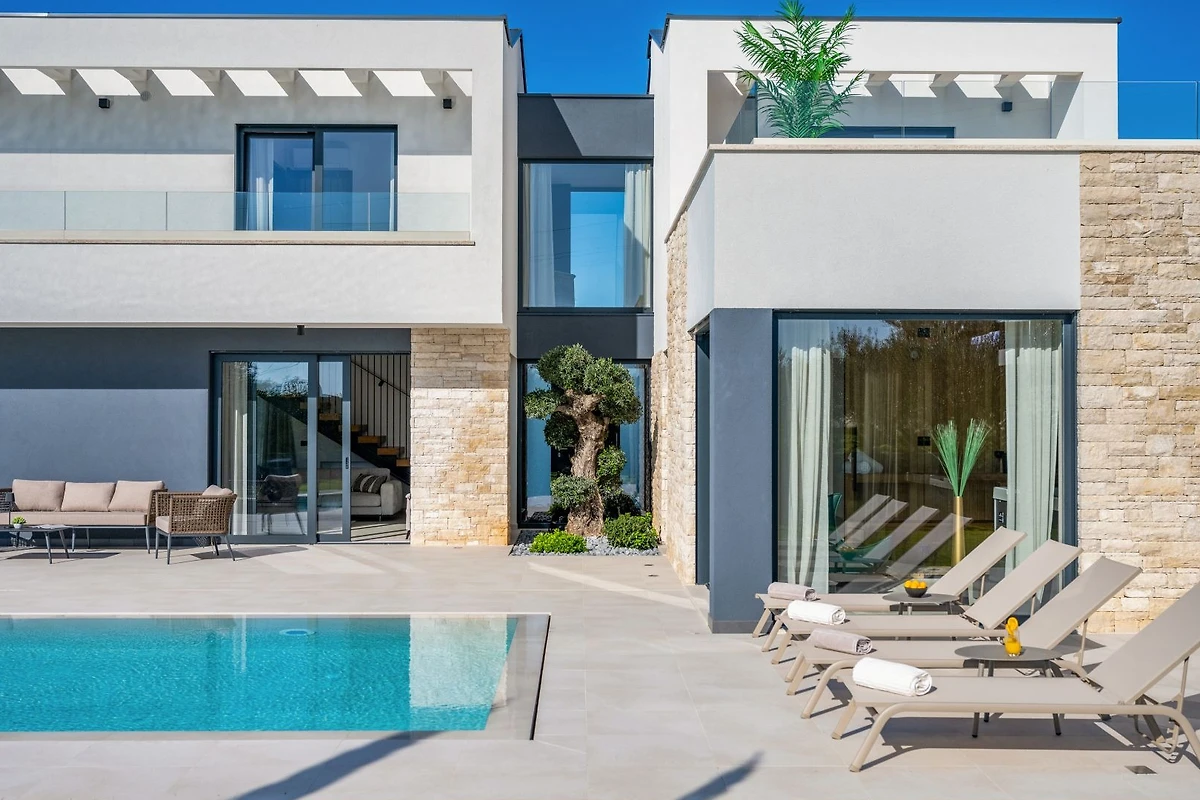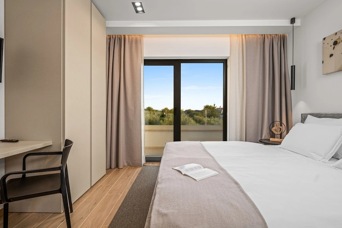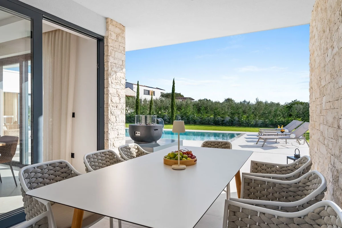 Entdecken Sie Villa Asmoa, einen atemberaubenden ländlichen Rückzugsort, der in der ruhigen Landschaft von Višnjan eingebettet ist und ideal für Familien und Paare ist, die einen friedlichen Urlaub suchen. Diese geräumige Villa bietet bequem Platz für bis zu 8 Gäste in 4 wunderschön eingerichteten Schlafzimmern, von denen jedes mit einem luxuriösen Queensize-Bett ausgestattet ist.