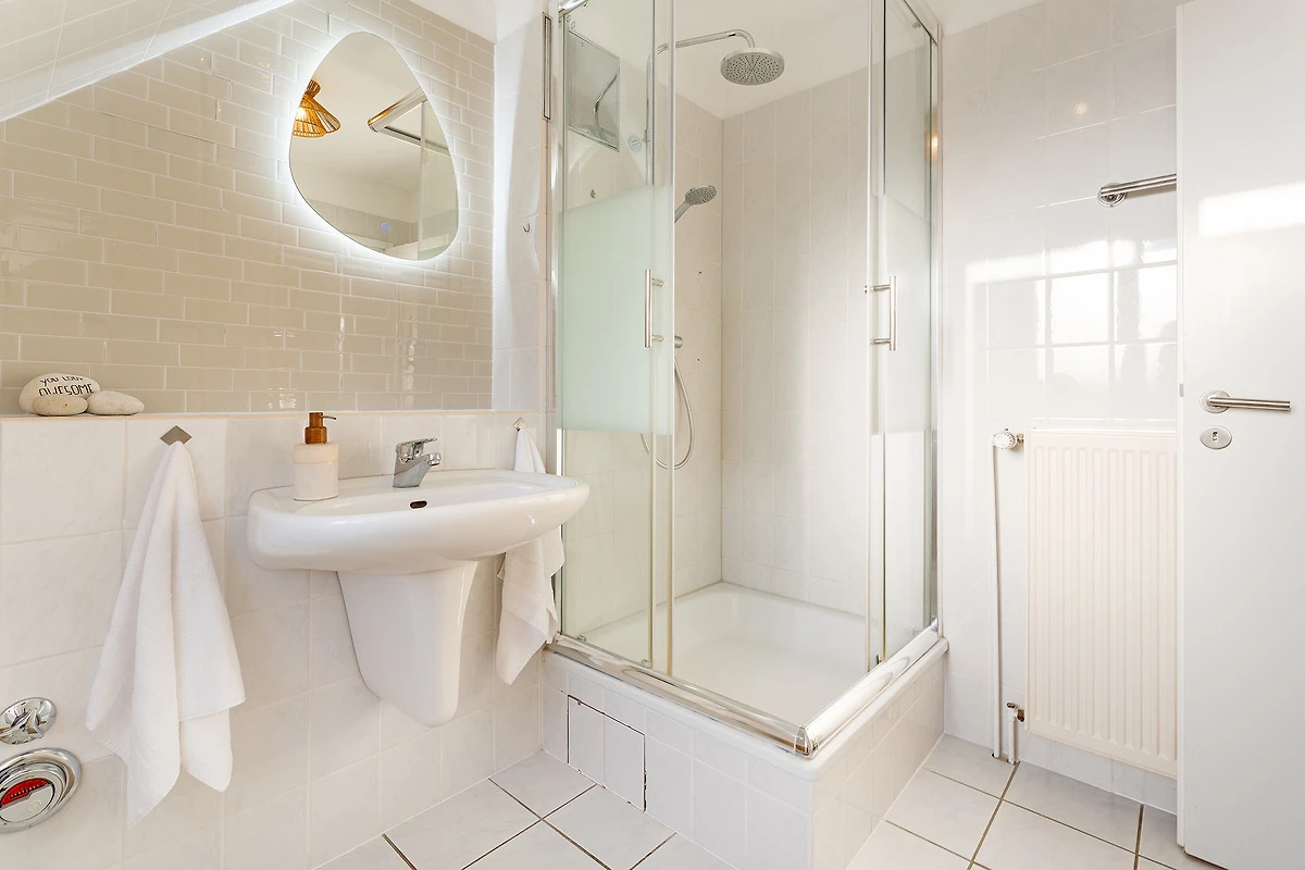 Das Herzstück der Wohnung bildet der helle Wohnbereich mit komfortablem Schlafsofa, Flachbild-TV und gemütlicher Sitzecke, die zu entspannten Stunden einlädt. Ein Elektrokamin rundet das gemütliche Ambiente ab. Vom Wohnzimmer aus gelangen Sie auf den 3m² grossen Balkon mit Südwest-Ausrichtung, der für sonnige Stunden sorgt – bitte beachten Sie, dass Grillen hier nicht gestattet ist. Die angrenzende, moderne Küche ist bestens ausgestattet mit Backofen, Geschirrspülmaschine, Kühlschrank, Herd sowie einer Nespresso-Kapselmaschine und einem Airfryer – ideal, um sich im Urlaub selbst zu versorgen. Zwei separate Schlafzimmer mit Doppelbetten sorgen für erholsame Nächte. Die Wohnung verfügt über zwei Badezimmer, beide ausgestattet mit Dusche (Einstiegshöhe ca. 37 cm), WC und Haartrockner. Für Familien mit Kleinkindern stehen ein Kinderreisebett und ein Kinderhochstuhl zur Verfügung.