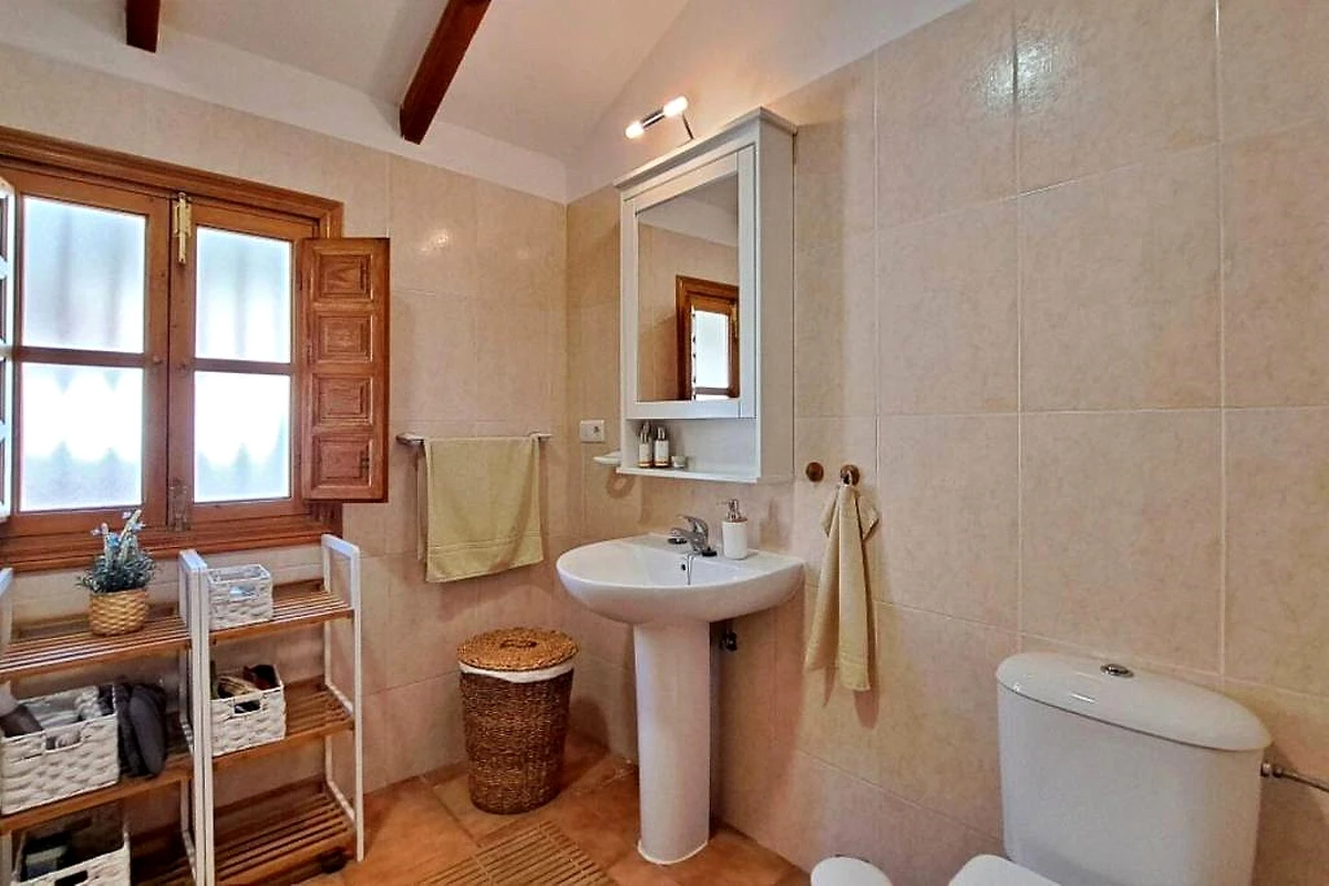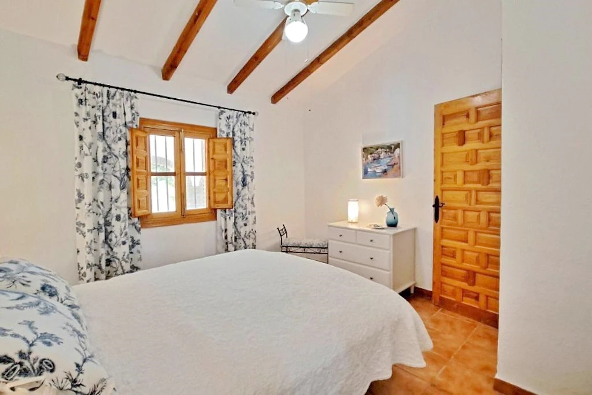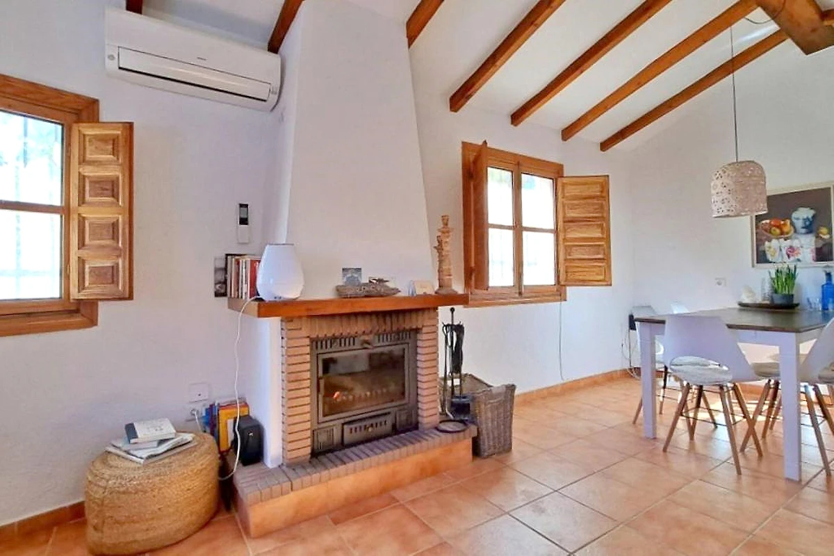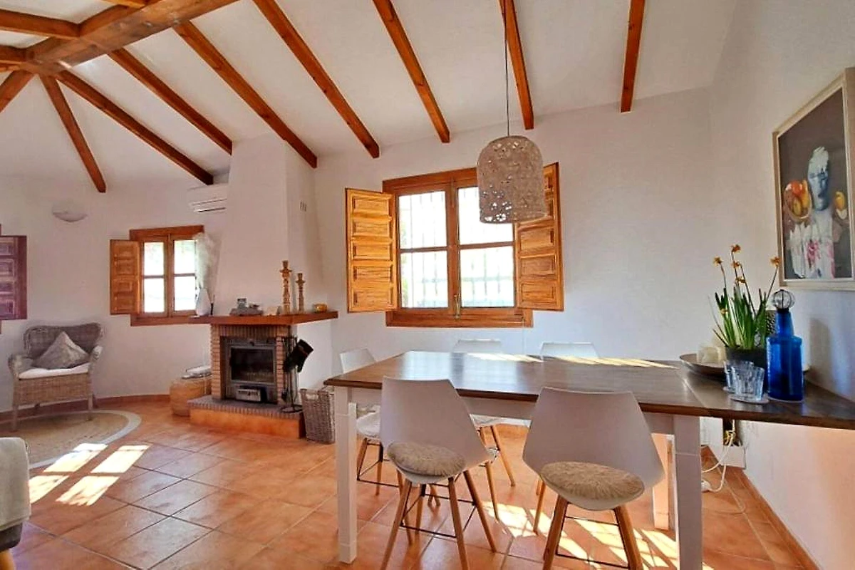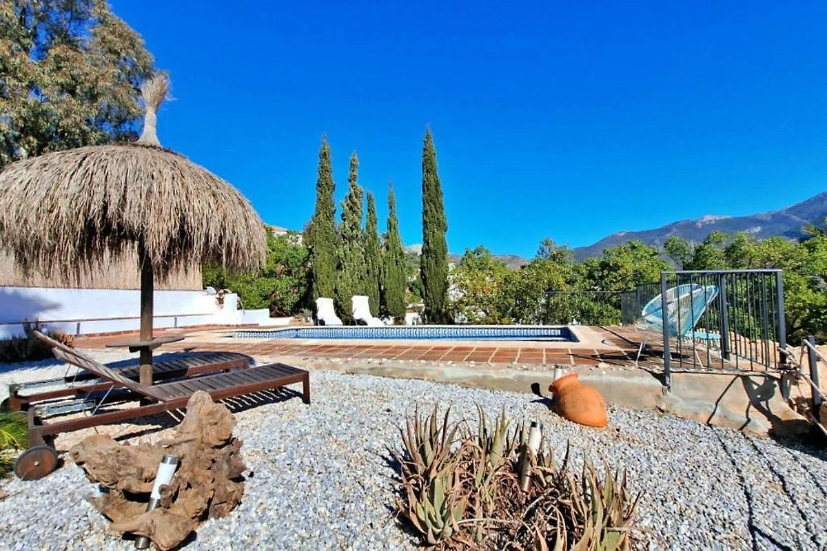 Willkommen in der Ferienoase La Perla Andaluza in Alcaucín an der Costa del Sol! Dieses einladende Ferienhaus bietet auf 120 m² ausreichend Platz für bis zu 5 Gäste in drei behaglichen Schlafzimmern. Die gepflegte Gartenanlage mit schattigen Sitzplätzen lädt zum Entspannen ein, während der eigene Swimmingpool mit Blick auf die umliegenden Berge für Erfrischung sorgt. Auf der großzügigen Terrasse genießen Sie gesellige Grillabende am BBQ-Grill oder entspannen auf den Sonnenliegen. Für wohlige Abende steht ein Kamin zur Verfügung, Klimaanlage sorgt im Sommer für angenehme Temperaturen.