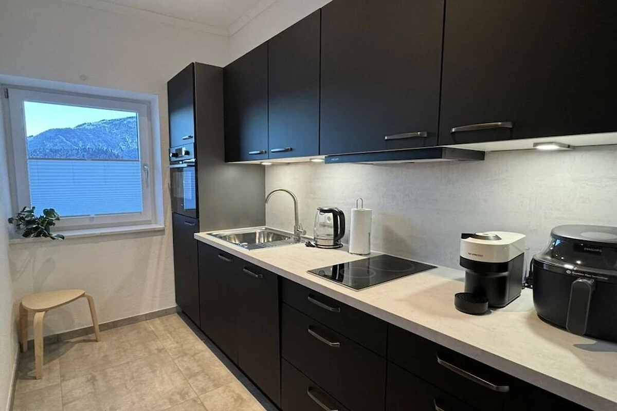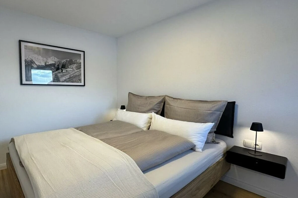 Der modern eingerichtete Wohnbereich mit 55-Zoll-OLED-Smart-TV, Soundbar, Waschtrockner, Airfryer und schnellem Glasfaser-Internet lädt zu entspannten Abenden und erholsamen Stunden ein. Das modulare Sofa lässt sich zudem zu einem 80×200 cm Bett umbauen – ideal, wenn man zu dritt reist.