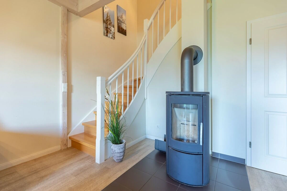 Parterre: (offene Küche(Kochplatte(4 Kochplatten, Ceranfeld), Wasserkocher, Toaster, Kaffeemaschine(Filter), Backofen, Mikrowelle, Spülmaschine, Kühl-/Gefrierkombination, Mixer), Wohn/Esszimmer(TV(Flatscreen, Satellit), Esstisch, Kaminofen, DVD-Spieler, Blu-ray-Player, Radio), Schlafzimmer(Einzelbett(90 x 200 cm)), Badezimmer(Trockner, Dusche, Waschbecken, Toilette, Waschmaschine))
