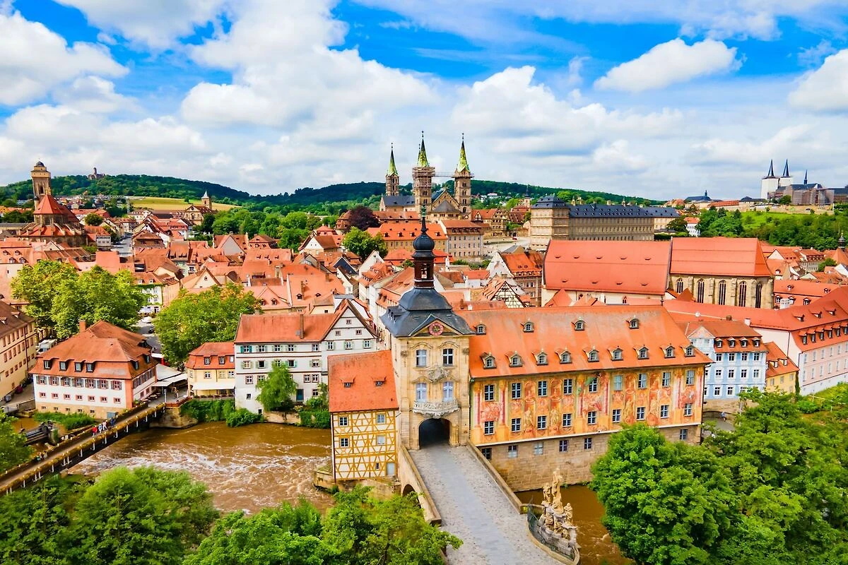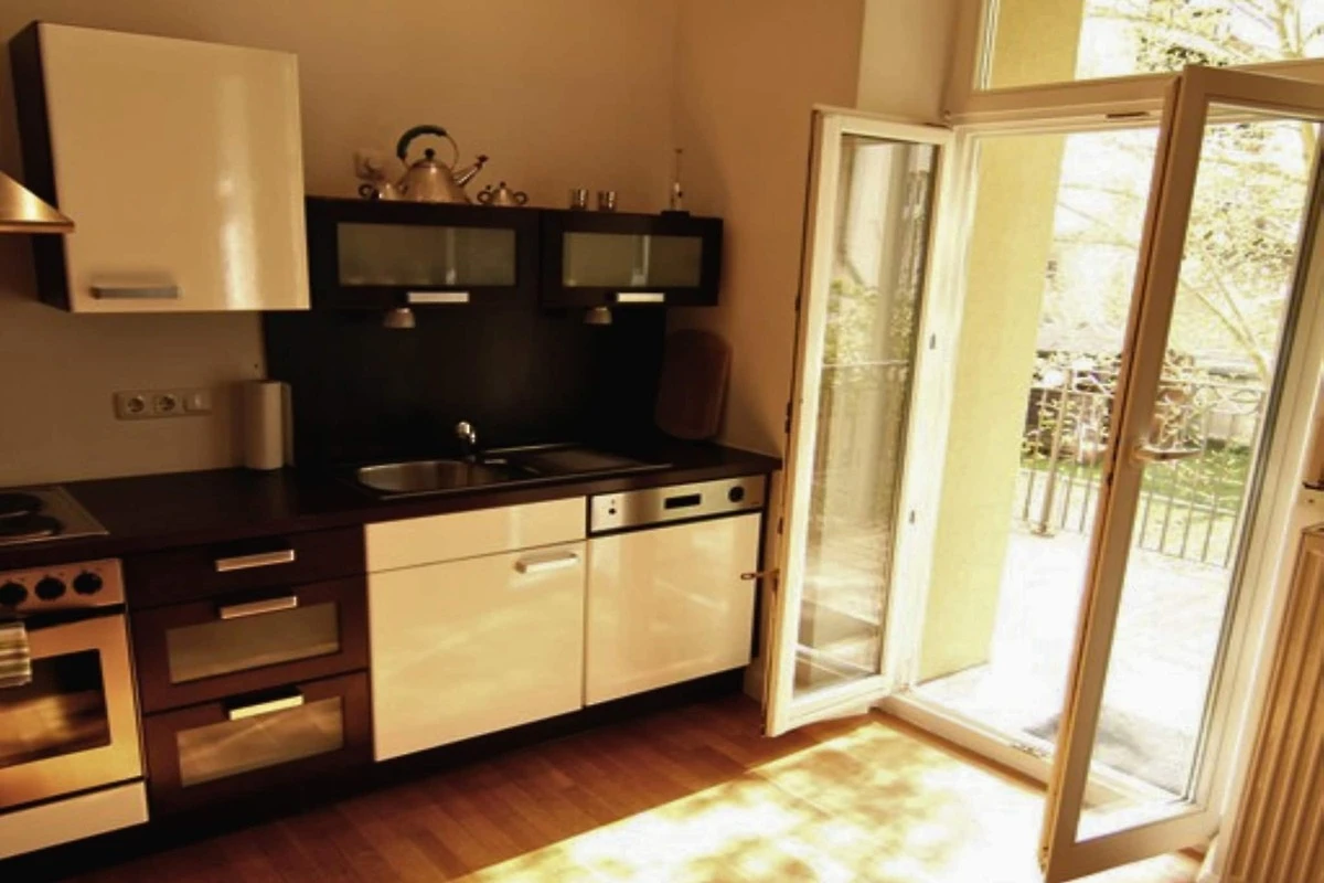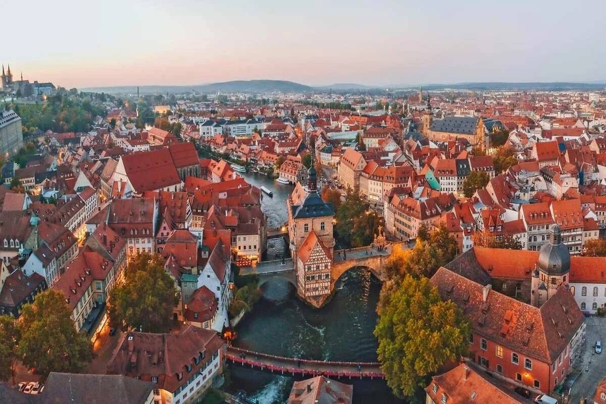 Romantische Ferienwohnung im Herzen der Innenstadt von Bamberg in einem schönen Jahrhundertwendehaus. Nur 2 Minuten zu Fuß vom alten Rathaus entfernt!!Die Räume sind 3m hoch und haben Stuckdecke, sowie weiße Kassettentüren. Wir haben das mit modernen Möbeln kombiniert. Unsere Ferienwohnung ist absolut zentral gelegen und nur wenige Meter von den Sehenswürdigkeiten Bambergs entfernt. Cafes, Restaurants und Einkaufsmöglichkeiten liegen in unmittelbarer Nähe. Die Wohnung verfügt über ein Schlafzimmer mit Doppelbett, ein Wohnzimmer mit Sofa, das zum vollwertigen Doppelbett ausgeklappt werden kann, eine hochwertige Einbauküche, ein Esszimmer, ein Bad mit Wanne und ein separates WC. Die Wohnung ist sehr komfortabel mit Geschirrspüler, Mikrowelle und Stereoanlage, sowie mit einem 70cm Flachbildfernseher mit Kabelanschluss ausgestattet. Ein Internetanschluss ist vorhanden. Nach Süden steht ein 10qm großer, möblierter Balkon zur Verfügung. Eine Bushaltestelle ist direkt um die Ecke, der Bahnhof ist ca. 1,5 km entfernt. Zum Parken gibt es in der Nähe die Tiefgarage Zentrum Nord.