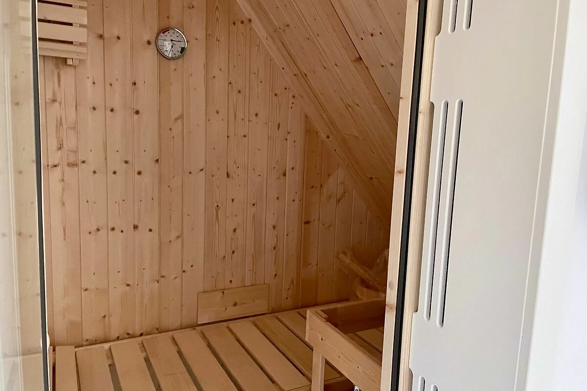Zu den Highlights der Ferienunterkunft zählen wir u. a. die hauseigene Sauna, die Terrasse und die ruhige Lage in einer Seitenstraße.