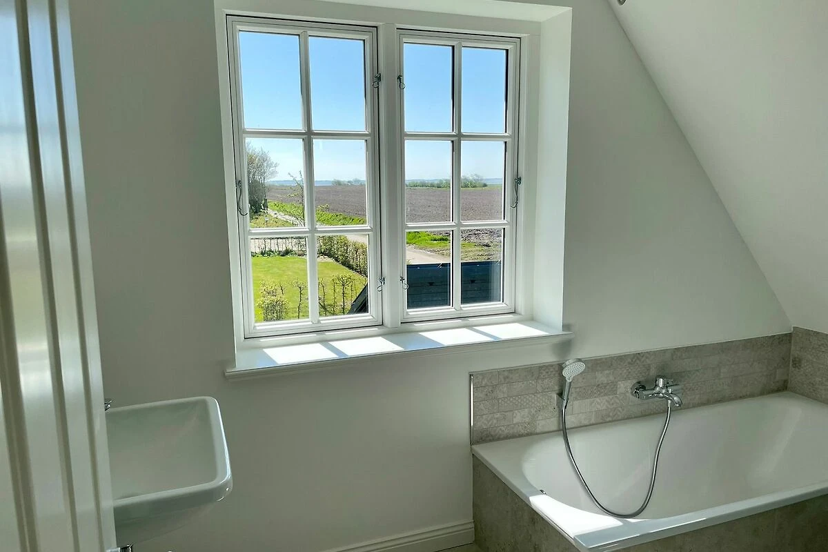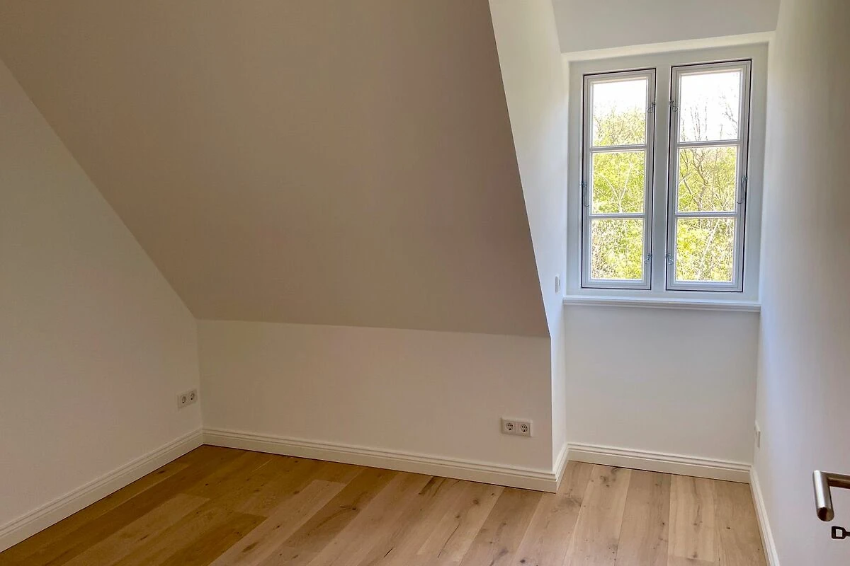 Im Obergeschoss sind die beiden Schlafzimmer - jeweils mit einem Doppelbett ausgestattet -, ein Vollbad mit Dusche und Badewanne sowie ein weiteres Duschbad mit der hauseigenen Sauna gelegen.