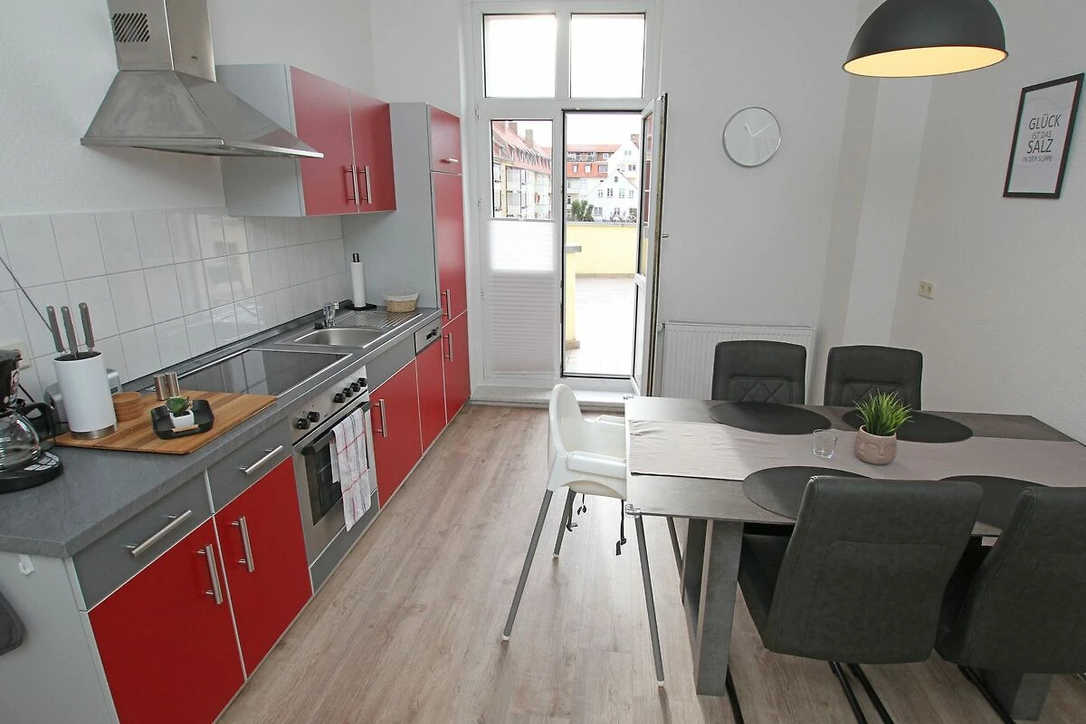 Die stilvoll und modern eingerichtete Ferienwohnung befindet sich in der Th.-Müntzer-Strasse. Nur wenige Minuten zu Fuss von der historischen Altstadt, dem imposanten Dom St. Stephanus und St. Sixtus, der Martinikirche sowie dem Theater entfernt. Einkaufsmöglichkeiten, Cafés und Restaurants sind bequem erreichbar. Auch die öffentliche Verkehrsanbindung ist hervorragend.