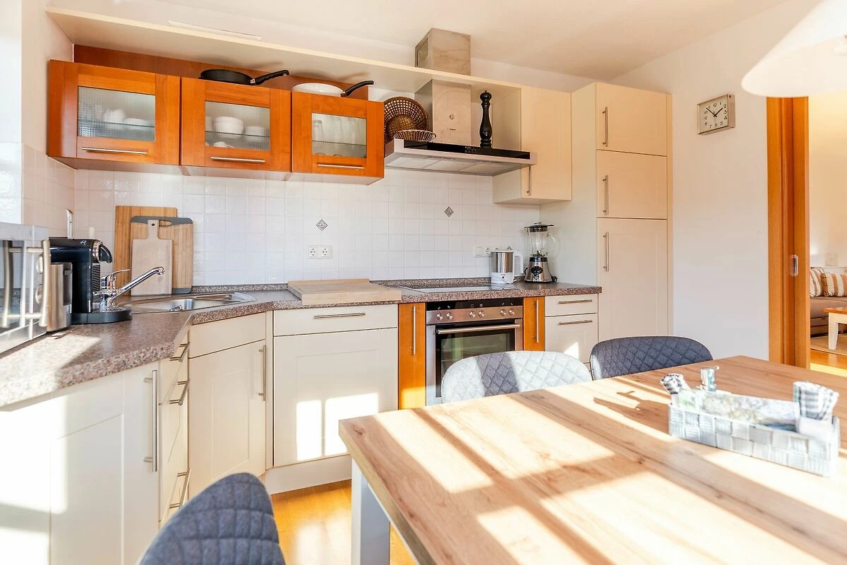 Geniessen Sie wunderschöne Stunden auf zwei Balkonen, welche über den Wohnbereich betreten werden können. Die gut ausgestattete Küche bietet Ihnen alle Annehmlichkeiten für den täglichen Bedarf und auch einen gemütlichen Esstisch. Das Bad verfügt über eine Badewanne, eine Dusche, WC und Waschbecken, ein WC ist zusätzlich separat.