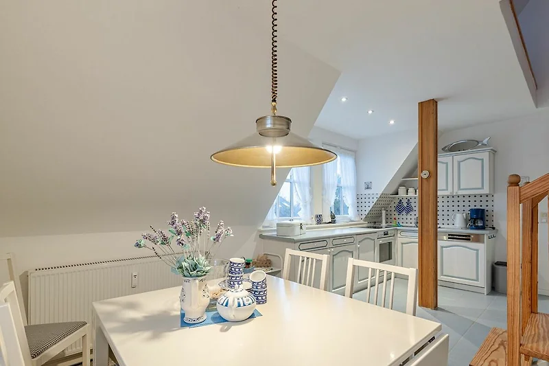 Die klare Trennung von Wohn- und Schlafbereich macht die Ferienwohnung sowohl für Paare als auch für Familien ideal. Strand, Natur und das Ortszentrum von List sind gut erreichbar.