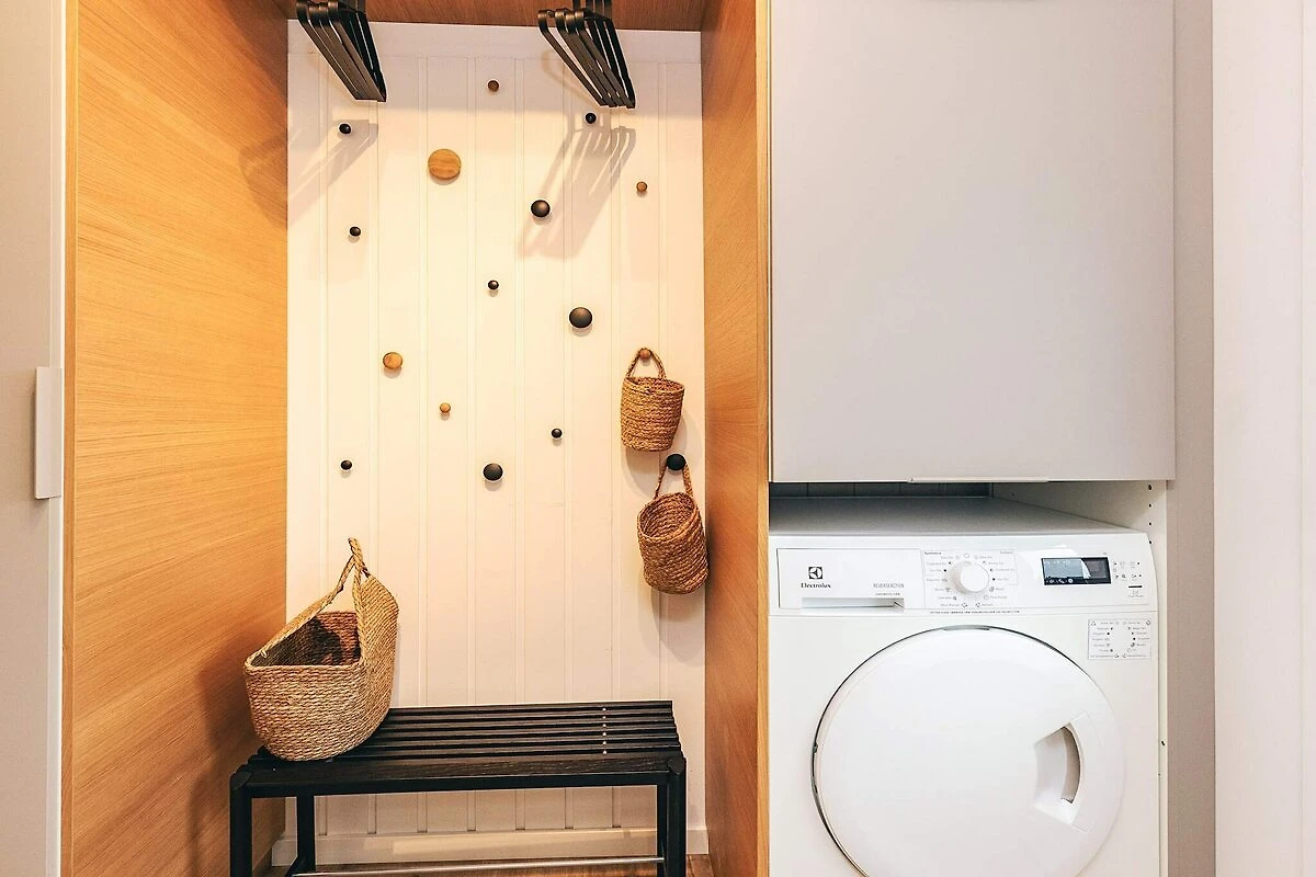 , Küche(Herd(Induktion), Kaffeemaschine, Backofen, Mikrowelle, Spülmaschine, Tiefkühlschrank(60-99L), Kühl-/Gefrierkombination, Hochstuhl), Wohn-/Schlafzimmer(TV(Deutsch Fernsehsender, dänische Fernsehsender)), Schlafzimmer(Doppelbett, Babybett), Schlafzimmer(2x Einzelbett), Schlafzimmer(2x Einzelbett), Schlafzimmer(2x Einzelbett), Badezimmer(Waschbecken, Dusche, Toilette), Badezimmer(Trockner, Waschbecken, Dusche, Toilette, Waschmaschine), Badewanne(im Garten, erwärmt, 4 Personen), Heizung(elektrisch), Terrasse, Gartenmöbel, Liegestühle