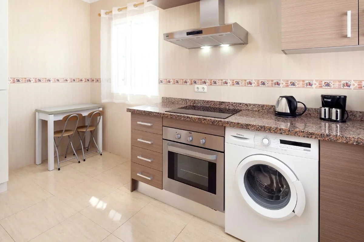 Die voll ausgestattete Küche lässt keine Wünsche offen: Backofen, Mikrowelle, Kühlschrank, Gefrierschrank, Geschirrspüler, Kaffeemaschine, Wasserkocher und alle nötigen Küchenutensilien sind vorhanden. Eine Waschmaschine, Bügeleisen und ein Haartrockner bieten zusätzlichen Komfort. Für kleine Gäste gibt es ein Babybett und einen Hochstuhl. Bettwäsche ist inklusive.