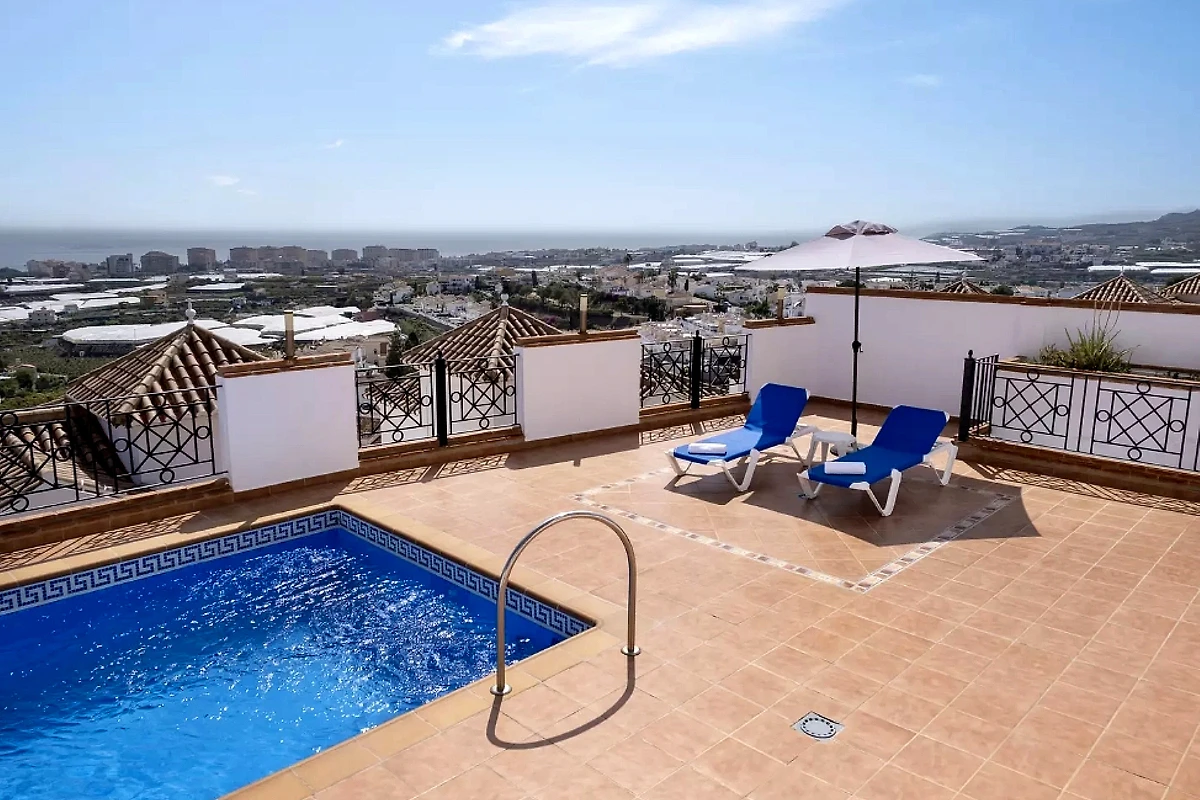 Willkommen in der Villa Brisas del Mar in Torrox Costa an der östlichen Costa del Sol – Ihr perfektes Urlaubsdomizil für bis zu 6 Gäste! Auf großzügigen 160 m² erwarten Sie drei komfortable Schlafzimmer und zwei gepflegte Badezimmer, ideal für Familien oder Freunde. Die lichtdurchflutete Wohnlandschaft lädt zum Entspannen ein, während Sie auf dem Balkon oder der weitläufigen Terrasse den Blick auf das glitzernde Mittelmeer genießen. Ein privater Swimmingpool sorgt für Erfrischung an warmen Tagen. Für gesellige Abende steht Ihnen ein BBQ-Grill zur Verfügung.