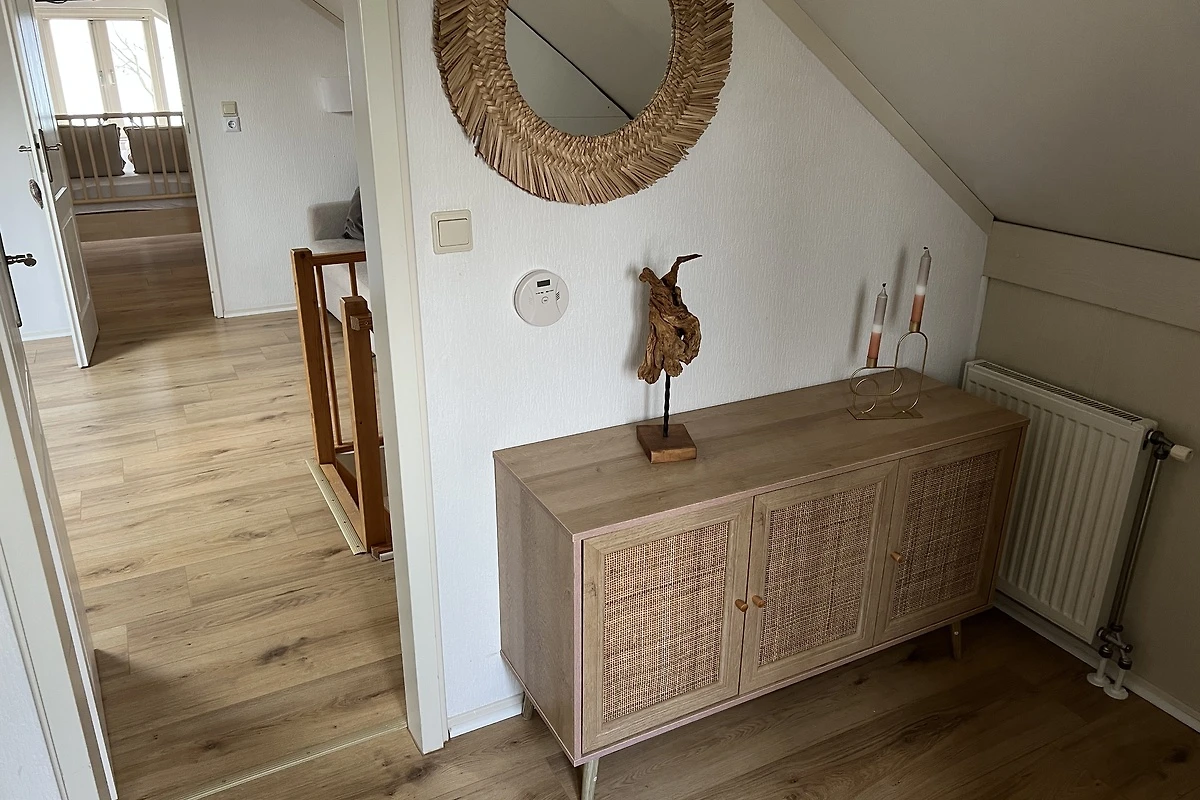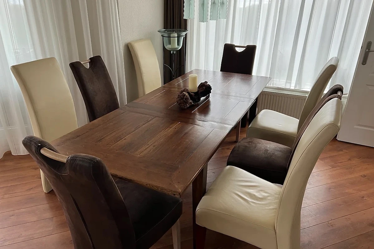 Willkommen im Haus am See in Lathum, Niederlande – Ihrem Feriendomizil für bis zu 8 Gäste auf großzügigen 100 m². Zwei komfortable Schlafzimmer mit hochwertiger Bettwäsche sorgen für erholsame Nächte, während das Badezimmer mit Haartrockner und modernen Armaturen zur Entspannung einlädt. Die offene Küche ist mit allem ausgestattet, was das Herz begehrt: eine Küchenzeile, Geschirrspüler, Mikrowelle, Wasserkocher und Kaffeemaschine bieten Ihnen maximale Flexibilität beim Zubereiten Ihrer Lieblingsspeisen. Im lichtdurchfluteten Wohnbereich genießen Sie gesellige Stunden mit Familie oder Freunden, und auf der Terrasse mit Gartenmöbeln können Sie den Tag bei einem leckeren BBQ am Grill ausklingen lassen. Das Haus ist ausschließlich für Nichtraucher geeignet – für frische Luft und Wohlbefinden ist also gesorgt. Große Fenster eröffnen den Blick auf den See und die grüne Umgebung, während die gepflegte Rasenfläche viel Platz zum Entspannen oder Spielen bietet. Die stilvolle Einrichtung und die ruhige Lage machen das Haus am See zum perfekten Rückzugsort für einen unvergesslichen Urlaub am Wasser.