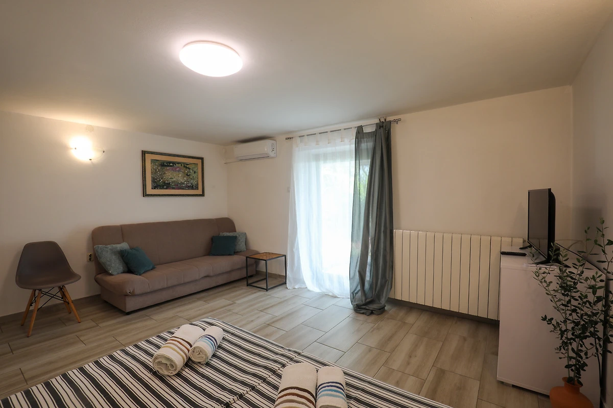 Die Lage ist ideal, um das maritime Flair von Pula zu erleben: Die nahegelegene Marina und die Küste laden zu Spaziergängen ein, während Sie auf der Terrasse oder im Garten die Ruhe genießen. Studio TISA vereint Komfort und Funktionalität für einen unvergesslichen Urlaub in Istrien!