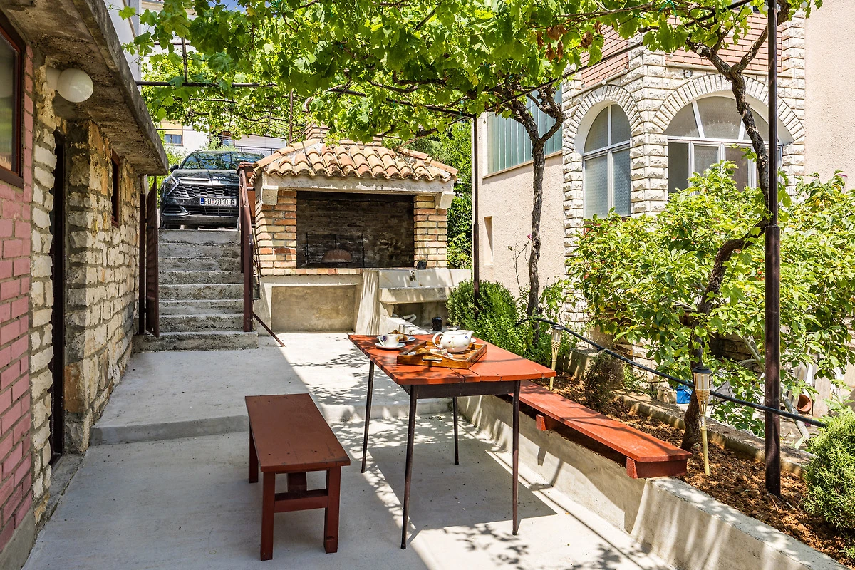 Willkommen im Studio TISA für 2, Ihrer perfekten Ferienunterkunft in Pula, Istrien! Das 30 m² große Apartment bietet alles, was Sie für einen entspannten Aufenthalt zu zweit benötigen. Genießen Sie sonnige Stunden im gepflegten Garten oder auf der eigenen Terrasse – ideal für ein gemeinsames Frühstück oder ein entspanntes Abendessen vom BBQ-Grill. Ihr Auto parkt sicher auf dem reservierten Stellplatz.