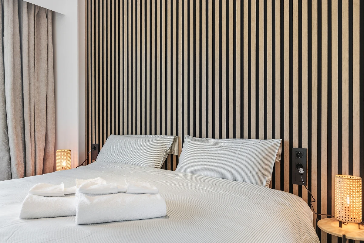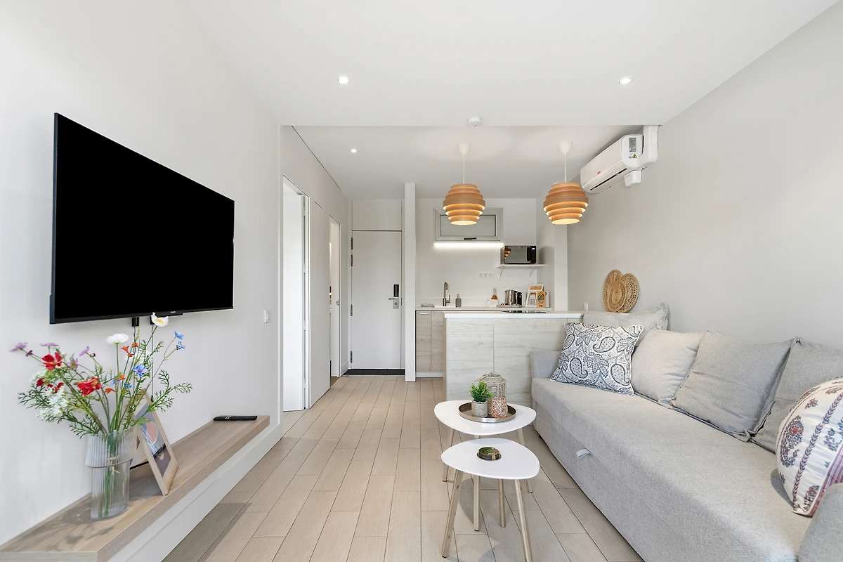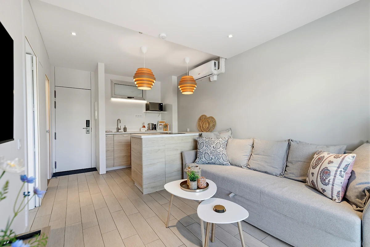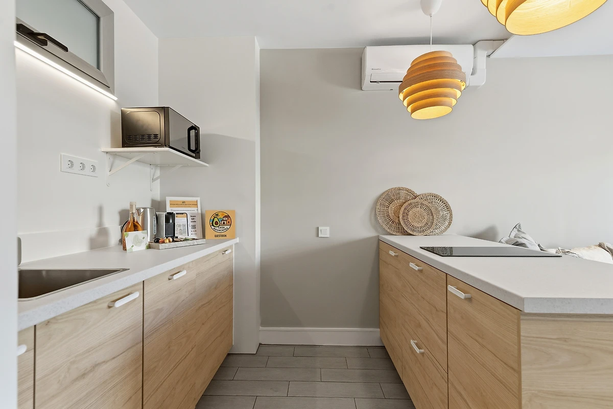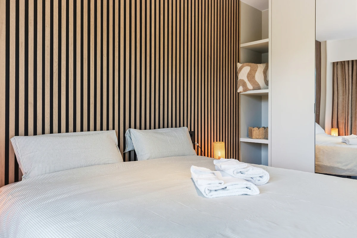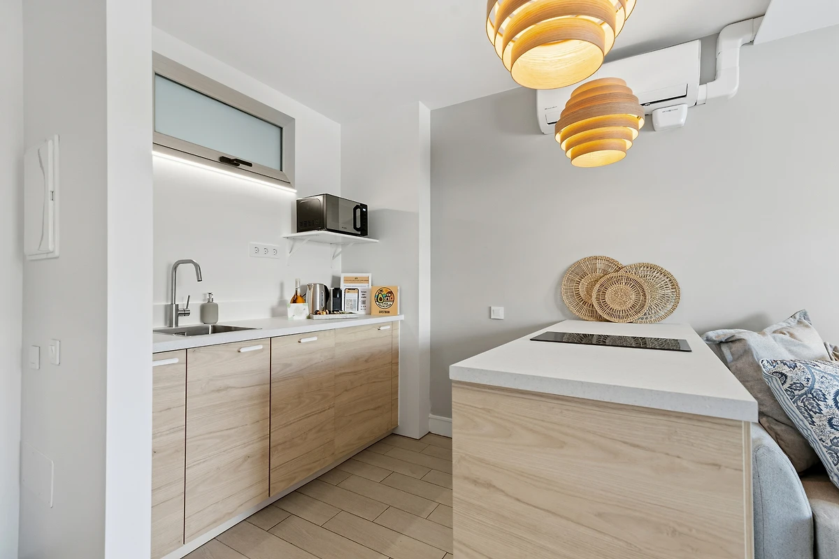 Klimaanlage garantiert angenehme Temperaturen zu jeder Jahreszeit. Die gut ausgestattete Küchenzeile mit Geschirrspüler, Mikrowelle, Wasserkocher und Kaffeemaschine ermöglicht es, gemeinsam zu kochen und zu genießen. Selbstverständlich sind Bettwäsche, TV und eine Waschmaschine vorhanden. Familien mit kleinen Kindern profitieren von einem bereitstehenden Kinderbett.