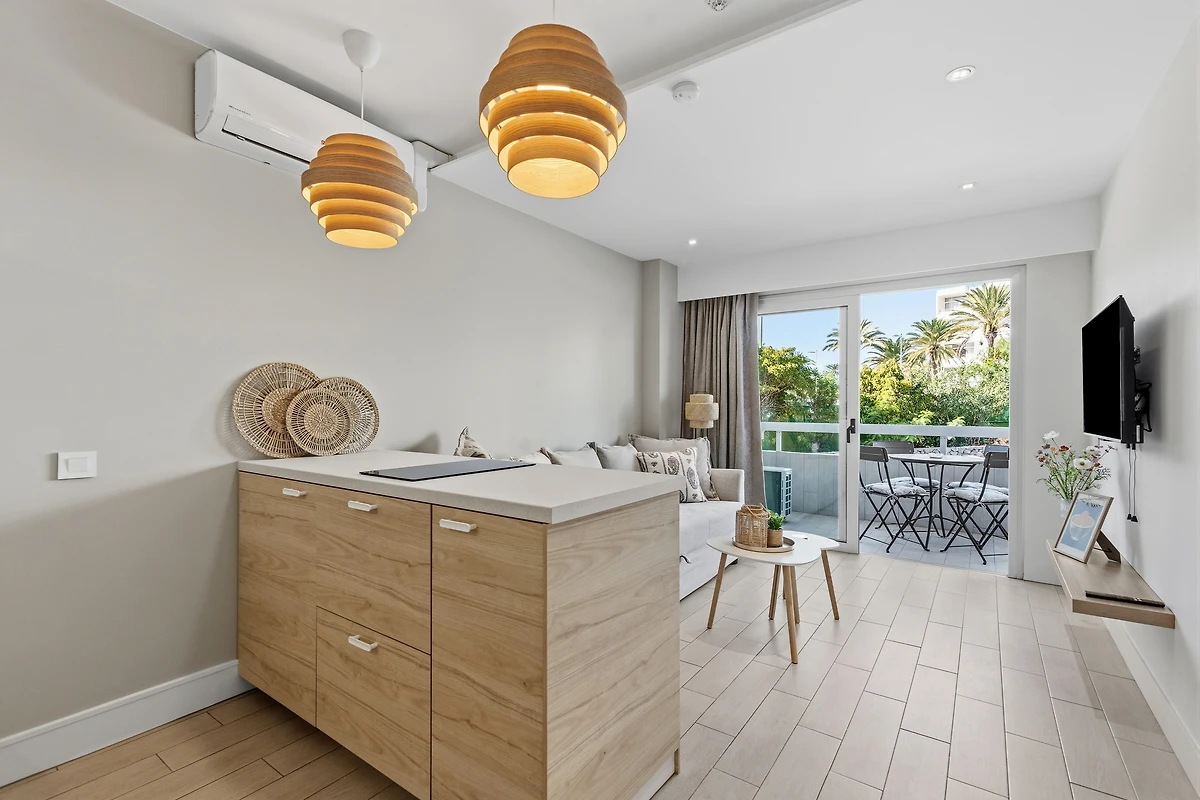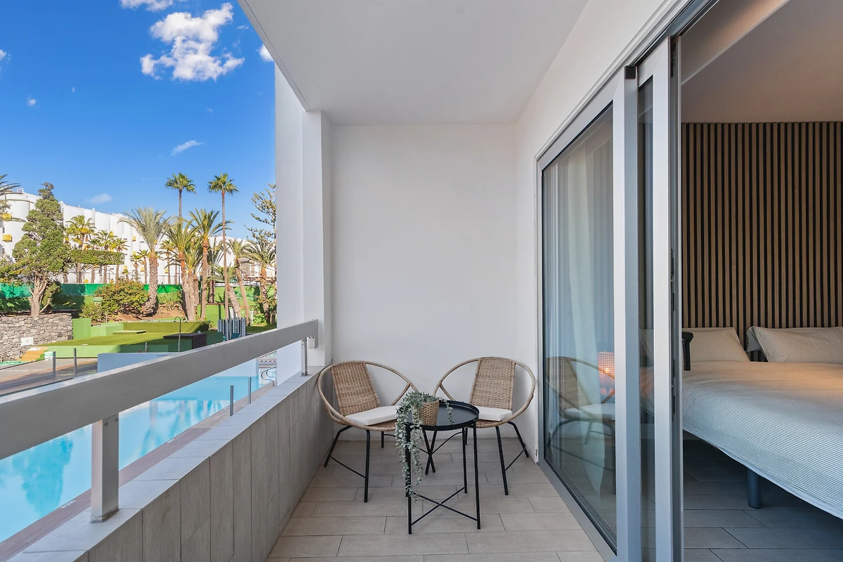 Willkommen in der Ferienwohnung Familienurlaub Playa del Ingles – Ihr Rückzugsort für entspannte Tage unter der Sonne der Kanarischen Inseln! Die Unterkunft bietet auf 42 m² Platz für bis zu 4 Gäste und verfügt über zwei Schlafzimmer, ein Badezimmer sowie einen stilvollen Wohnbereich. Der großzügige Balkon lädt dazu ein, den Tag bei frischer Meeresluft ausklingen zu lassen. Für Erfrischung sorgt der gepflegte Swimmingpool der Anlage, während ein eigener Parkplatz Ihnen die Anreise erleichtert.