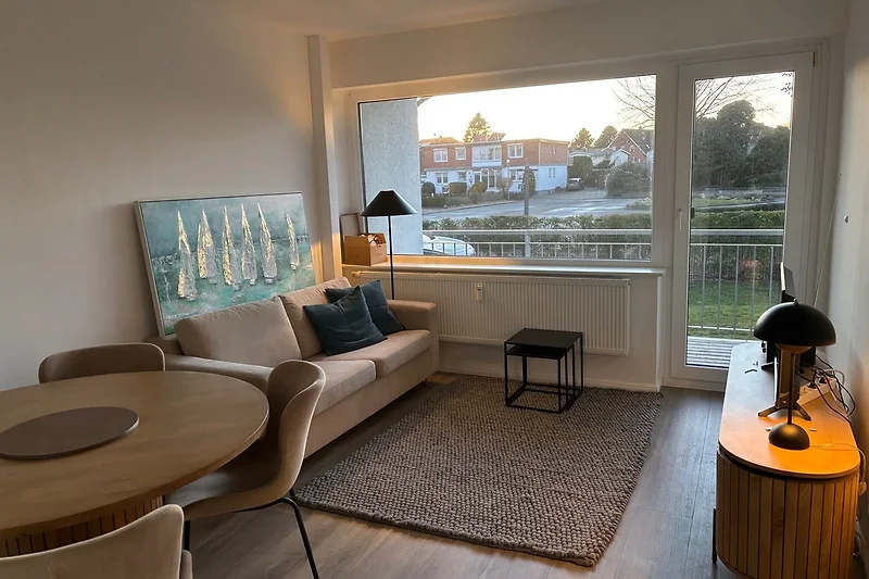 Die 2- Raumwohnung verfügt über ein separates Schlafzimmer mit Doppelbett 160 x 200 , Flur , ein Badezimmer mit Dusche und WC, ein Wohnzimmer mit bequemer Schlafcouch (ausziehbares Sofa) für 2 Personen und ein Esstisch mit Bestuhlung.