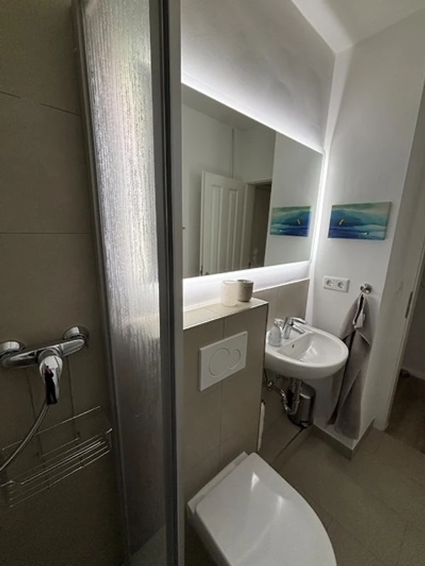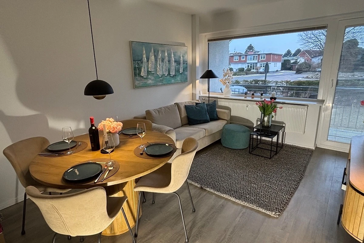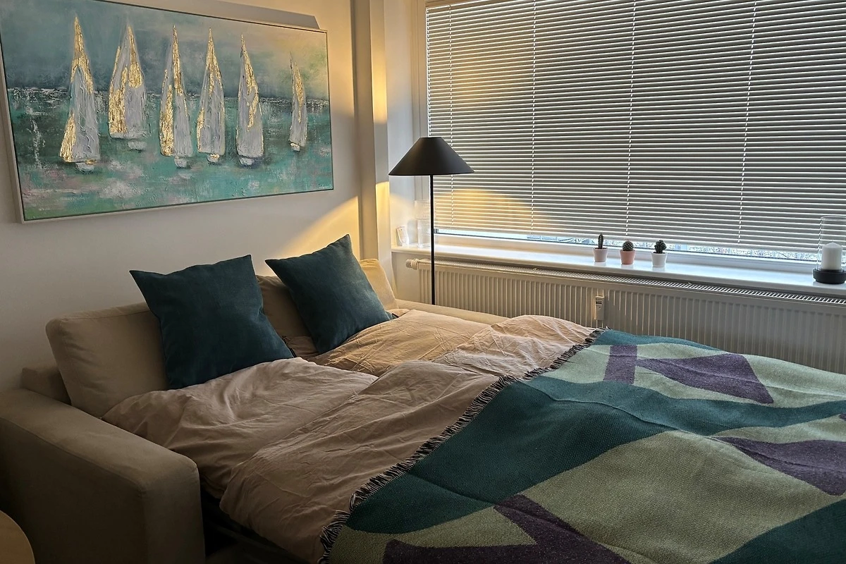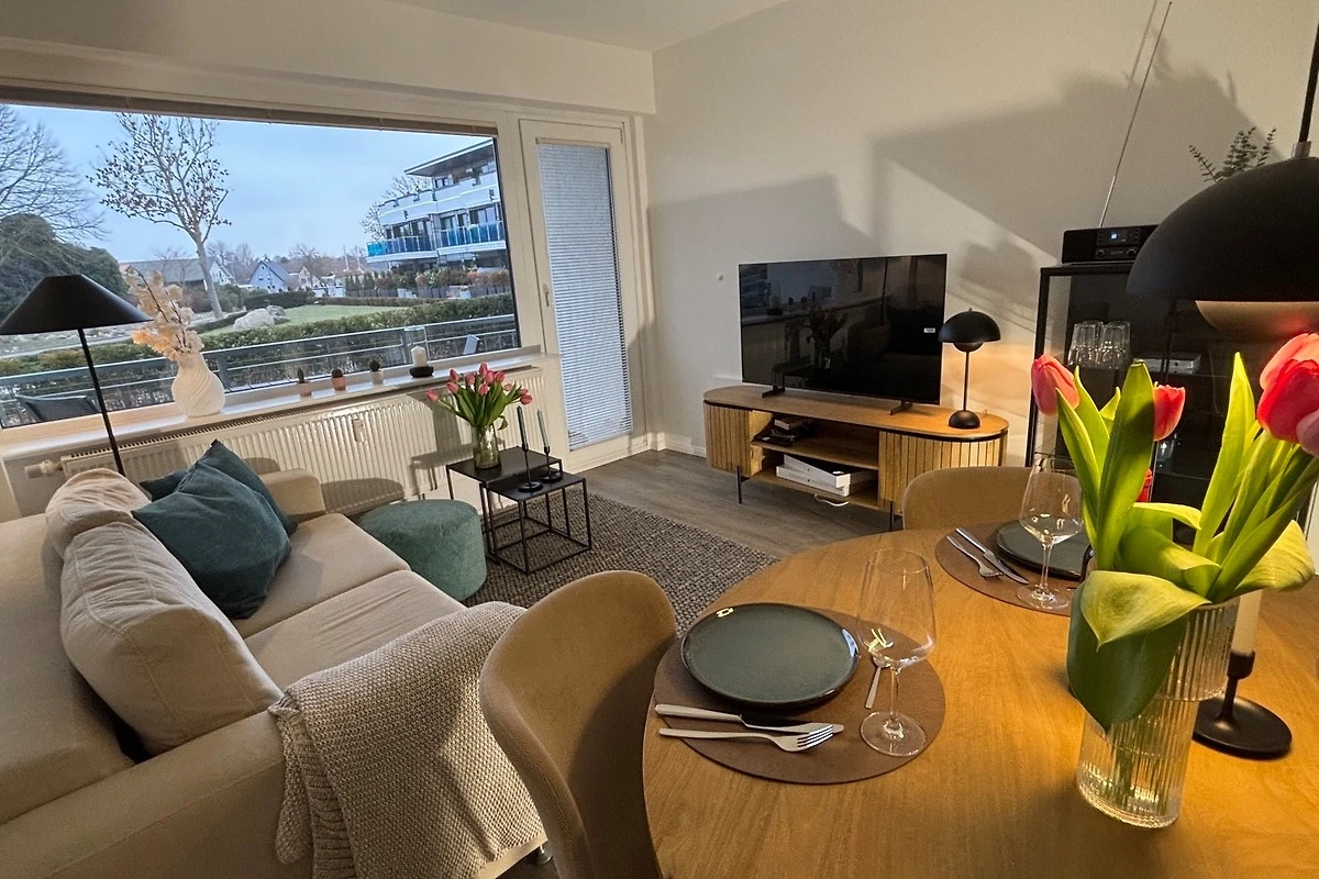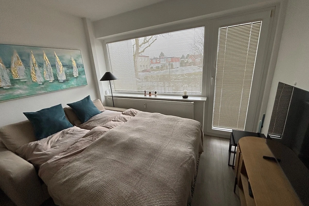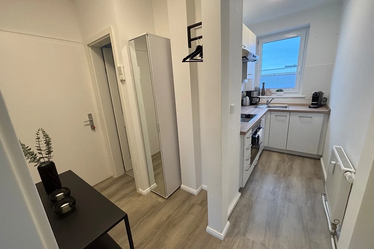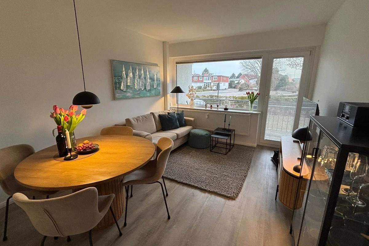 Die 2- Raumwohnung verfügt über ein separates Schlafzimmer mit Doppelbett 160 x 200 , Flur , ein Badezimmer mit Dusche und WC, ein Wohnzimmer mit bequemer Schlafcouch ( ausziehbares Sofa 135 cm x 190 cm ) für 2 Personen und ein Esstisch mit Bestuhlung.