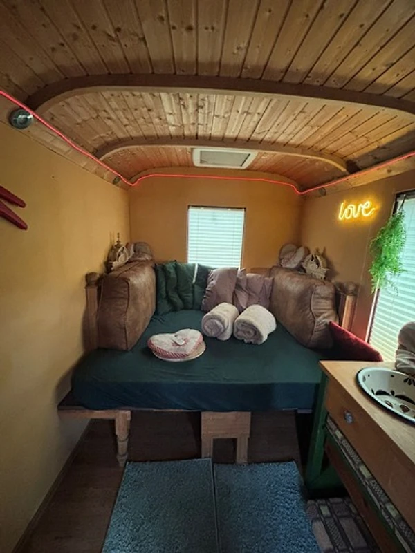 Exklusiv für dich steht ein gemütlicher Waldwagen zur Verfügung – ein kleiner Rückzugsort für ruhige Stunden. Zum Lesen, Nachdenken, Kuscheln oder einfach zum Abschalten. Viele Gäste empfinden ihn als das Herzstück des Aufenthalts. Hier kann man sogar übernachten und das Waldgefühl noch intensiver erleben.