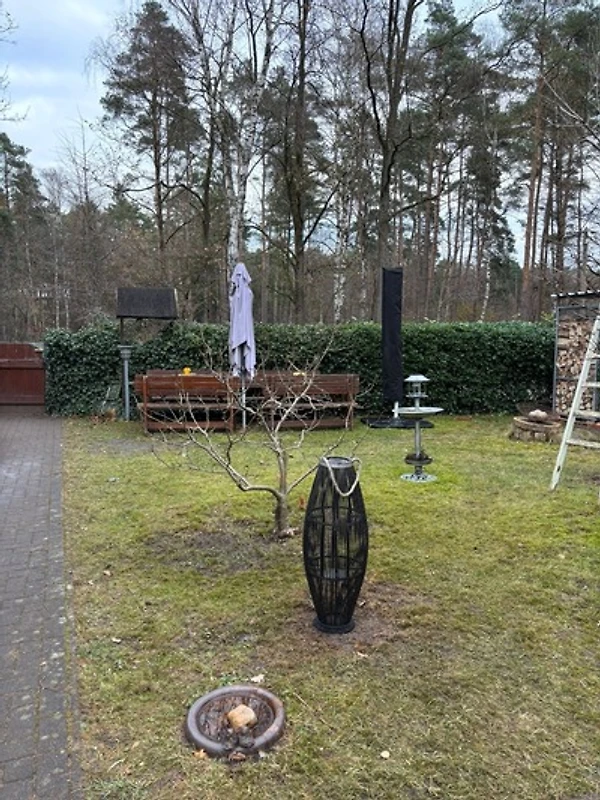 Der eingezäunte Vorgarten gehört zum Apartment und ist ideal für Gäste mit Hund. Direkt vor der Haustür beginnen Waldwege für Spaziergänge, kleine Auszeiten oder einfach frische Luft. Nach etwa 15 Minuten Fussweg erreichst du eine wunderschöne Heide – einfach tiefer in den Wald gehen und rechts halten.
