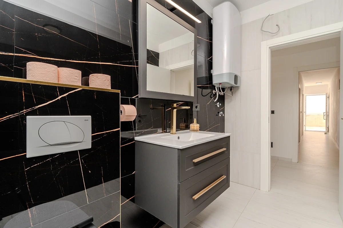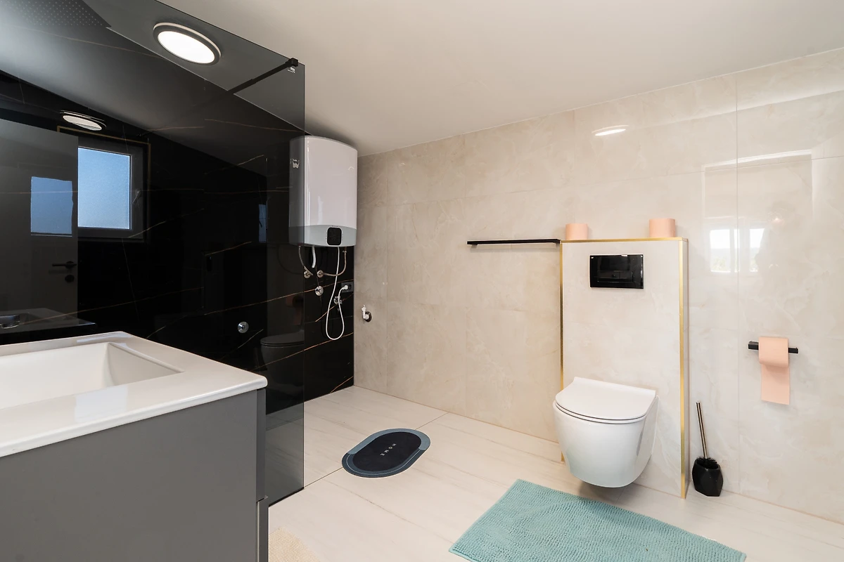 Die Villa verfügt über 4 Schlafzimmer, die jeweils mit einem Kingsize-Bett ausgestattet sind und somit maximalen Komfort für alle Gäste gewährleisten. Mit 3 gut ausgestatteten Badezimmern - 2 mit Duscheinrichtungen und 1 Toilette - wird jeder über ausreichend Platz und Privatsphäre verfügen. Die moderne amerikanische Küche ist vollständig mit erstklassigen Geräten ausgestattet, darunter ein Induktionskochfeld, Kühlschrank, Gefrierschrank, Backofen, Geschirrspüler, Kaffeemaschine und das gesamte notwendige Küchengeschirr.