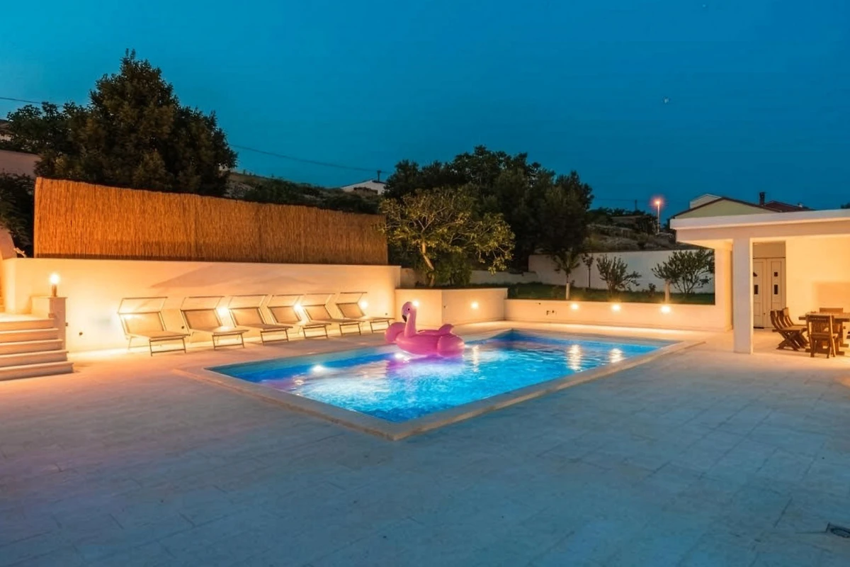 Entdecken Sie eine atemberaubende Meeresvilla in dem ruhigen Küstendorf Ražanac, die ein aussergewöhnliches Urlaubserlebnis für Familien und Paare bietet, die einen perfekten mediterranen Rückzugsort suchen.