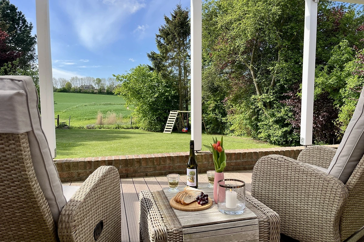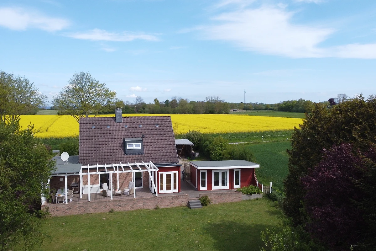 Das frisch renovierte, lichtdurchflutete Haus Feldblick liegt ca. 800 m entfernt vom Naturstrand der Geltinger Bucht auf einem 1.500 m² großen Grundstück am Feldrand mit einem traumhaften Blick in die Natur.