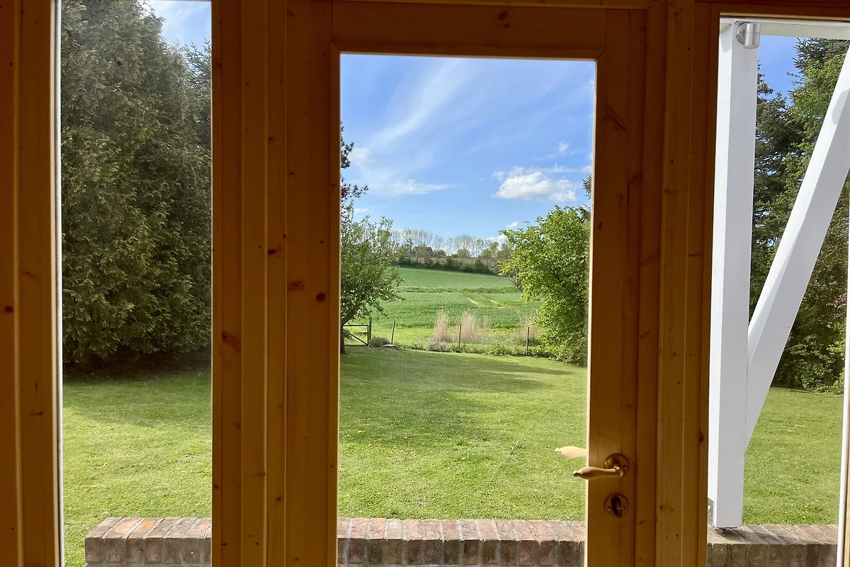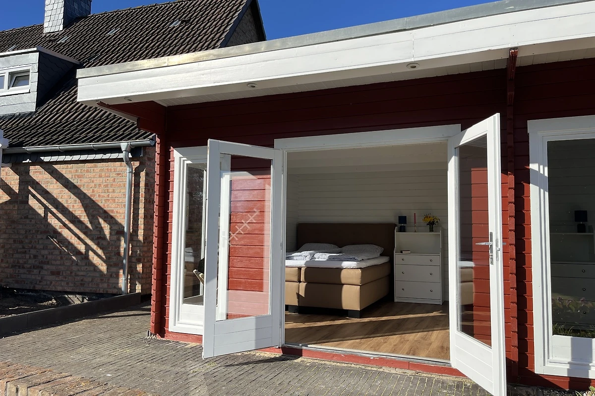 In den Monaten Mai bis September können Sie zusätzlich unsere idyllische und beheizte Blockhütte im Garten des Ferienhauses buchen. Diese bietet neben zwei weiteren Schlafzimmern mit Boxspringbetten (3 Schlafplätze) und einem eigenen WC einen wunderschönen Blick in die Felder. Ein Traum für Kinder und Erwachsene! Die Blockhütte kann nur in Verbindung mit dem Ferienhaus gebucht werden (30€/Nacht).