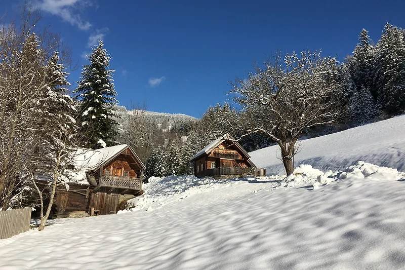 Unser Häuschen liegt direkt auf unserem Biobauernhof, ca. 1 km vom kleinen Bergdorf Gasen in der Steiermark entfernt. Es ist keine Almhütte in Alleinlage, es gibt auch Nachbarn, trotzdem ist es sehr ruhig und beschaulich bei uns.