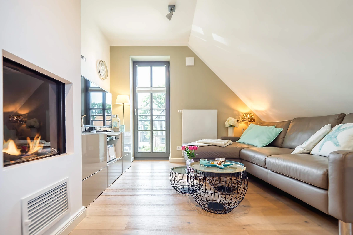 Die lichtdurchflutete Ferienwohnung empfängt Sie mit einer modernen und gemütlichen Atmosphäre. Der offene Wohn- und Essbereich mit Gaskamin bildet das Herzstück der Wohnung und lädt zu entspannten Abenden ein – ob bei einem guten Buch oder einem gemeinsamen Spieleabend. Die voll ausgestattete Küche bietet alles, um leckere Mahlzeiten für Ihre Liebsten zuzubereiten.