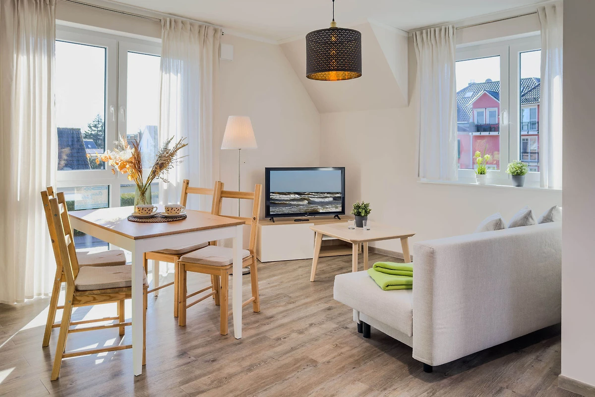 Willkommen in der Ferienwohnung "Frau Zander" in Zingst! Diese charmante Unterkunft bietet auf 54 m² Platz für bis zu 4 Personen und verbindet modernen Komfort mit maritimem Flair.