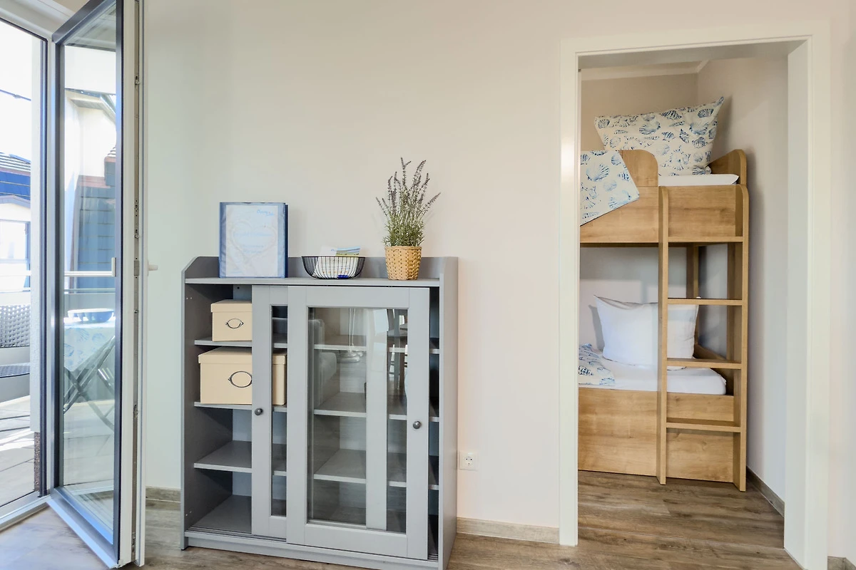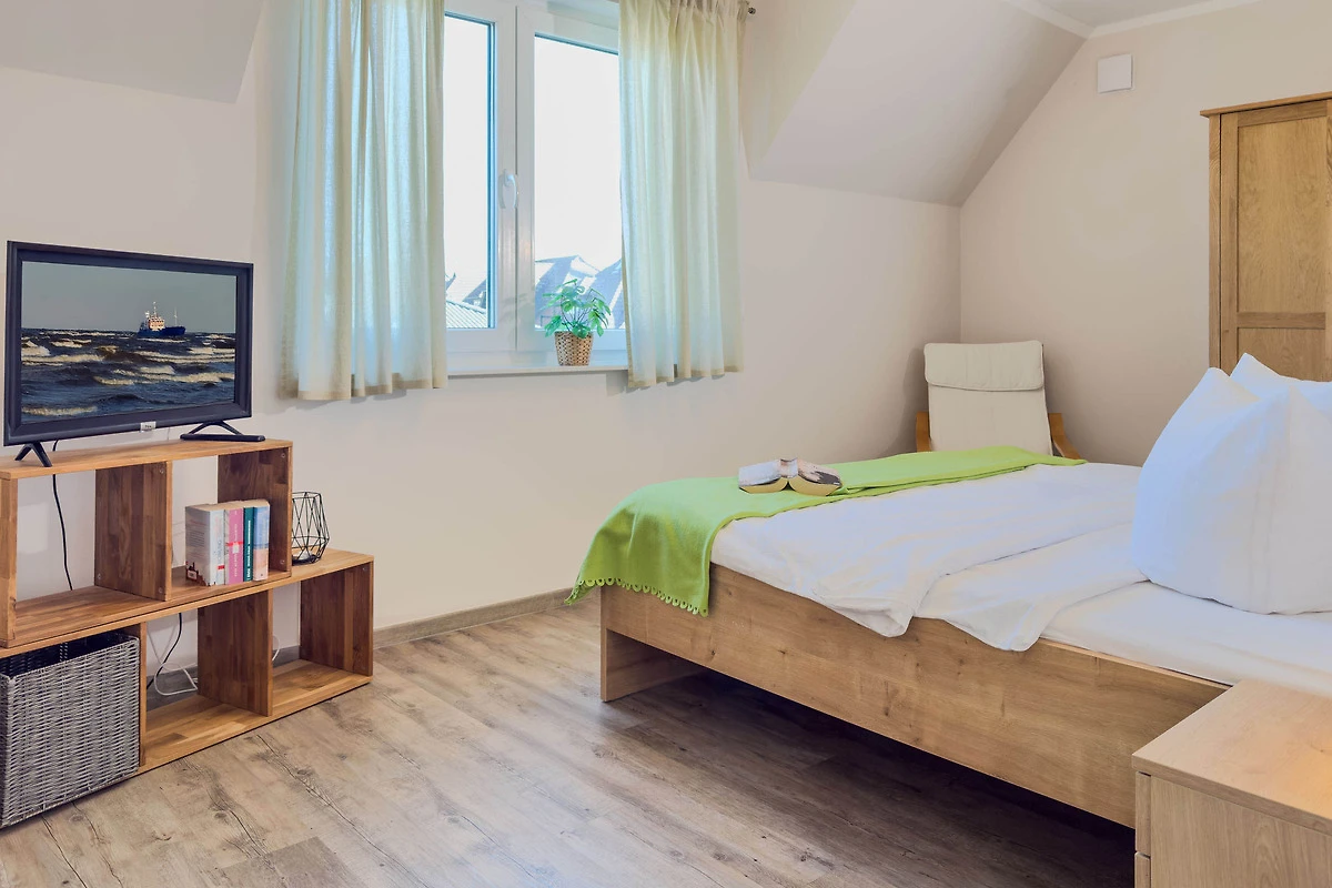 Die Ferienwohnung "Frau Zander" empfängt Sie mit einer harmonischen Kombination aus modernem Komfort und maritimem Ambiente. Der helle Wohnbereich lädt zu entspannten Stunden ein, während die voll ausgestattete Küche keine Wünsche offenlässt. Geniessen Sie Ihre Mahlzeiten auf dem Balkon und lassen Sie den Tag in gemütlicher Atmosphäre ausklingen. Das moderne Badezimmer und die komfortablen Schlafzimmer bieten zusätzlichen Komfort für erholsame Nächte.
