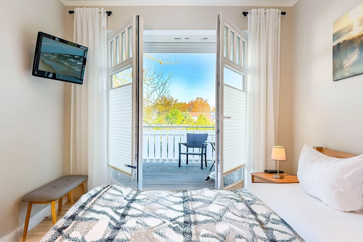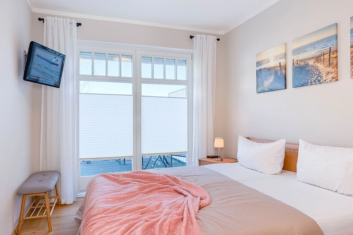 Für erholsame Nächte sorgen hochwertige Matratzen, Verdunkelungsmöglichkeiten und Insektenschutz – für Ruhe und erholsamen Schlaf nach einem Tag am Meer.