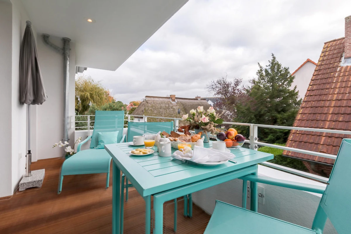 Balkon: Sonniger Südbalkon mit Designer-Möbeln, ideal zum Entspannen und Geniessen der frischen Ostseeluft.