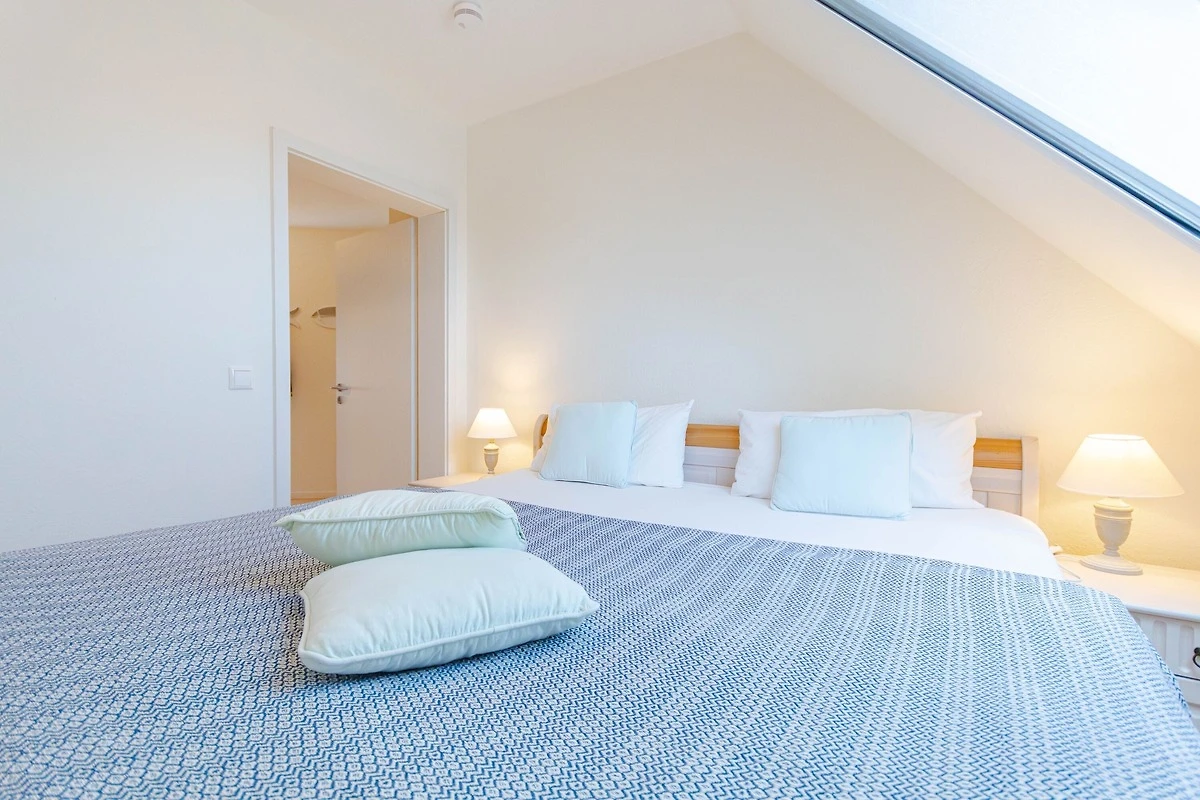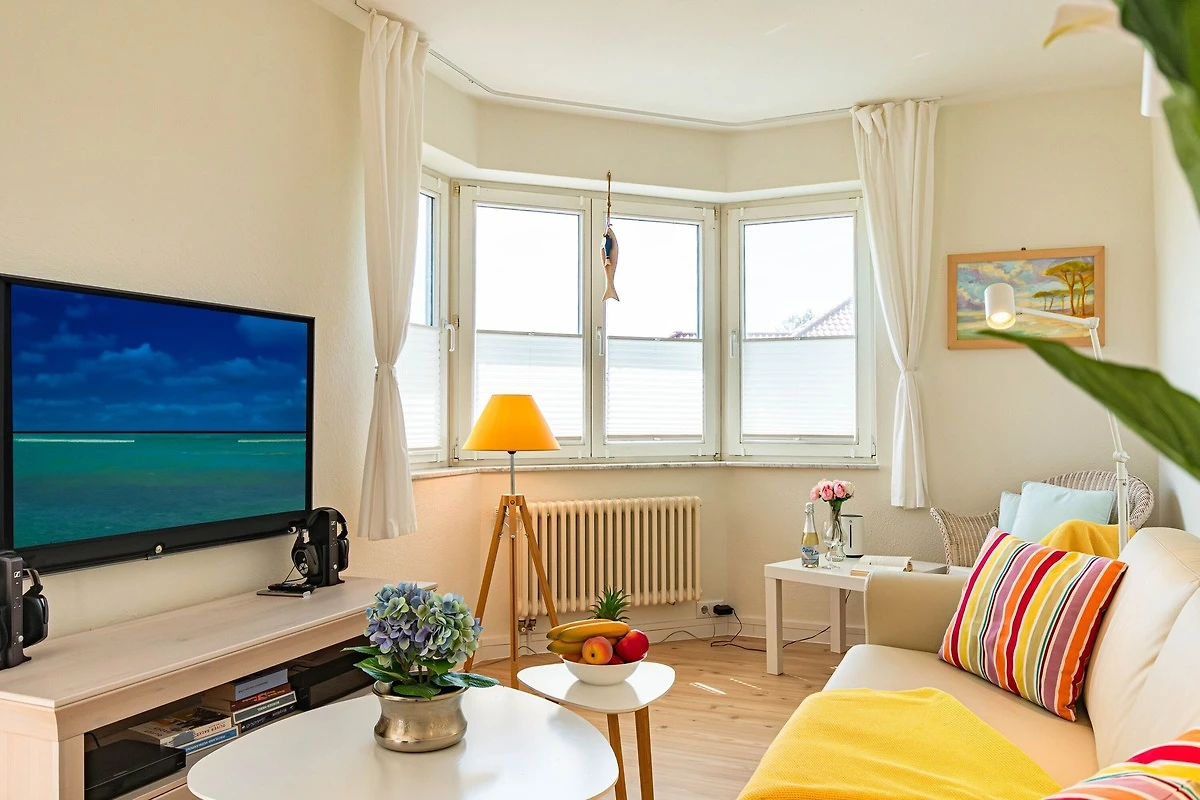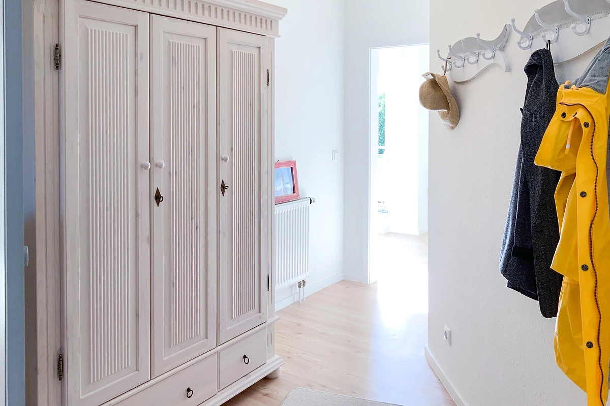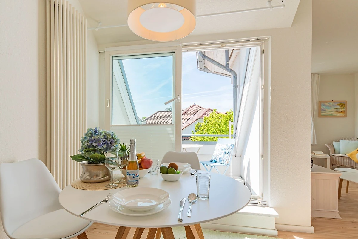 Die Ferienwohnung "Kranichflug" empfängt Sie mit einer harmonischen Kombination aus modernem Komfort und maritimem Ambiente. Der lichtdurchflutete Wohnbereich lädt zu entspannten Stunden ein, während die offene Küche mit allem ausgestattet ist, was Sie für Ihre Lieblingsgerichte benötigen. Geniessen Sie Ihre Mahlzeiten auf dem einladenden Balkon und lassen Sie den Tag in gemütlicher Atmosphäre ausklingen. Das moderne Badezimmer und das komfortable Schlafzimmer bieten zusätzlichen Komfort für erholsame Nächte.