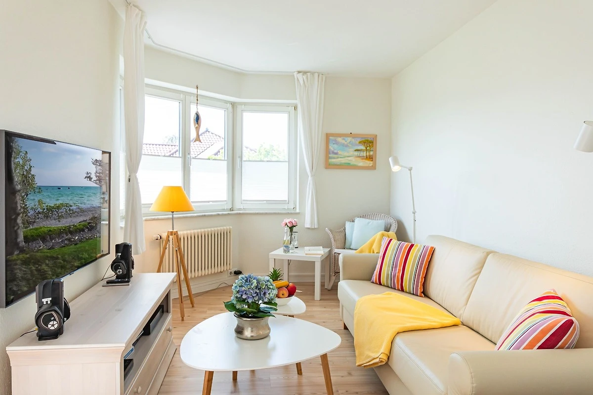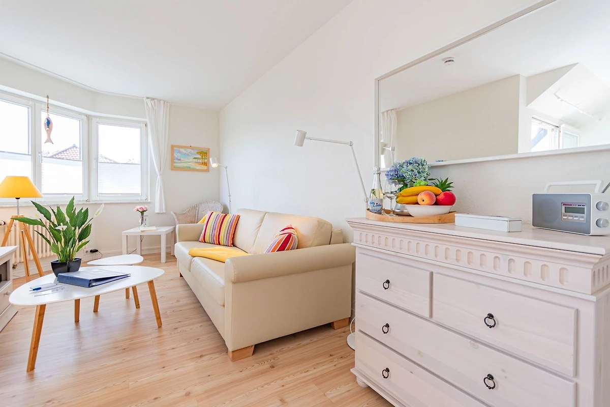 Willkommen in der Ferienwohnung "Kranichflug" in Zingst! Diese charmante 2-Zimmer-Wohnung bietet auf ca. 55 m² Platz für bis zu 2 Personen und ein Baby (auf Anfrage) und verbindet modernen Komfort mit maritimem Flair.