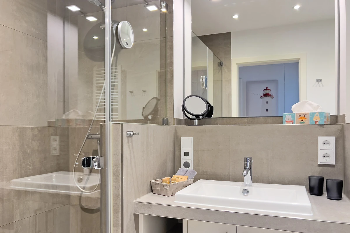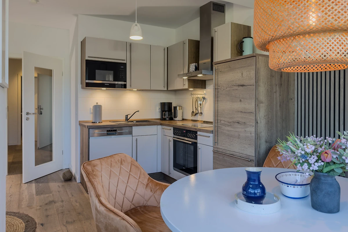 Die "Künstlerkate" empfängt Sie mit einer harmonischen Kombination aus modernem Komfort und maritimem Ambiente. Der lichtdurchflutete Wohnbereich mit Gaskamin lädt zu entspannten Stunden ein, während die voll ausgestattete Küche keine Wünsche offenlässt. Geniessen Sie Ihre Mahlzeiten auf der sonnigen Terrasse mit Gartenblick und lassen Sie den Tag in gemütlicher Atmosphäre ausklingen. Das elegante Badezimmer und die behaglichen Schlafzimmer bieten zusätzlichen Komfort für erholsame Nächte.